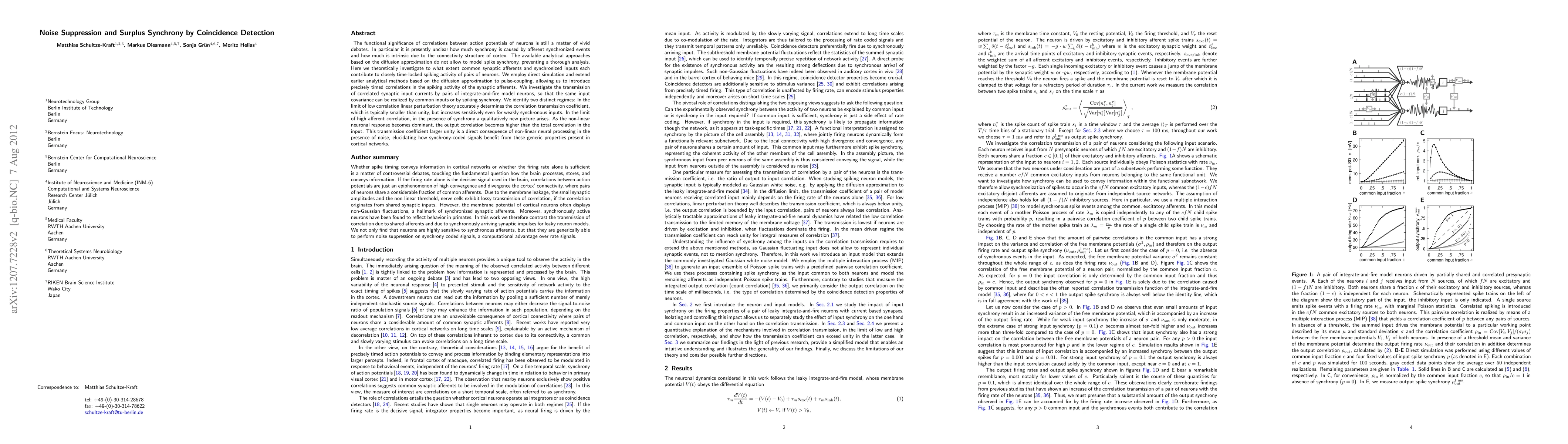 This paper explores how common synaptic inputs and synchronized inputs contribute to the closely time-locked spiking activity of pairs of neurons. It identifies two distinct regimes: in low correlation, linear perturbation theory determines the correlation transmission coefficient, while in high correlation, non-linear neural processing leads to a transmission coefficient greater than one, indicating surplus synchrony due to noise suppression.