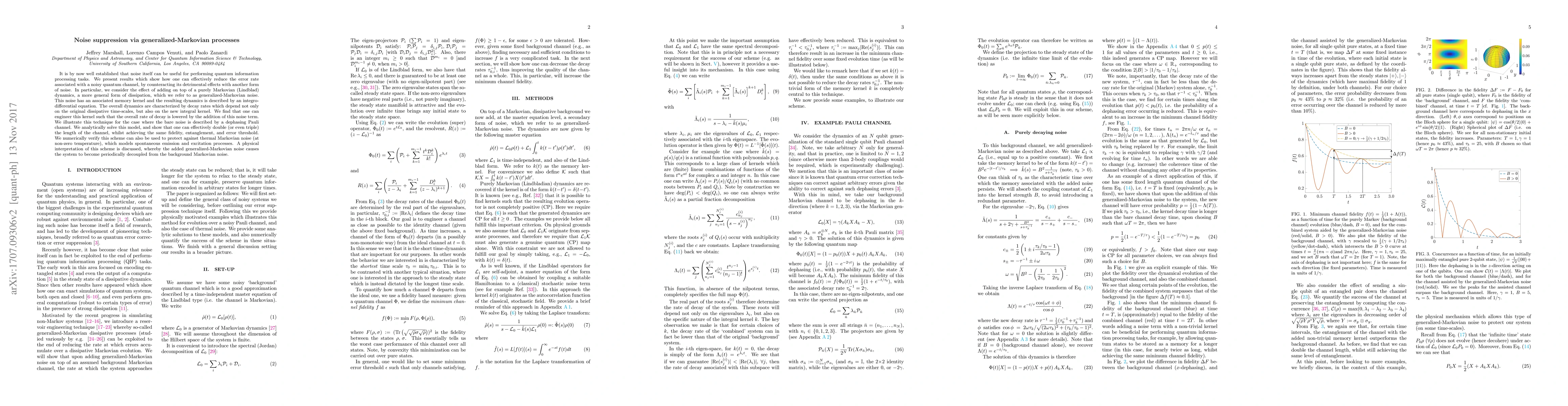 It is by now well established that noise itself can be useful for performing quantum information processing tasks. We present results which show how one can effectively reduce the error rate associated with a noisy quantum channel, by counteracting its detrimental effects with another form of noise. In particular, we consider the effect of adding on top of a purely Markovian (Lindblad) dynamics, a more general form of dissipation, which we refer to as generalized-Markovian noise. This noise has an associated memory kernel and the resulting dynamics is described by an integro-differential equation. The overall dynamics are characterized by decay rates which depend not only on the original dissipative time-scales, but also on the new integral kernel. We find that one can engineer this kernel such that the overall rate of decay is lowered by the addition of this noise term. We illustrate this technique for the case where the bare noise is described by a dephasing Pauli channel. We analytically solve this model, and show that one can effectively double (or even triple) the length of the channel, whilst achieving the same fidelity, entanglement, and error threshold. We numerically verify this scheme can also be used to protect against thermal Markovian noise (at non-zero temperature), which models spontaneous emission and excitation processes. A physical interpretation of this scheme is discussed, whereby the added generalized-Markovian noise causes the system to become periodically decoupled from the background Markovian noise.