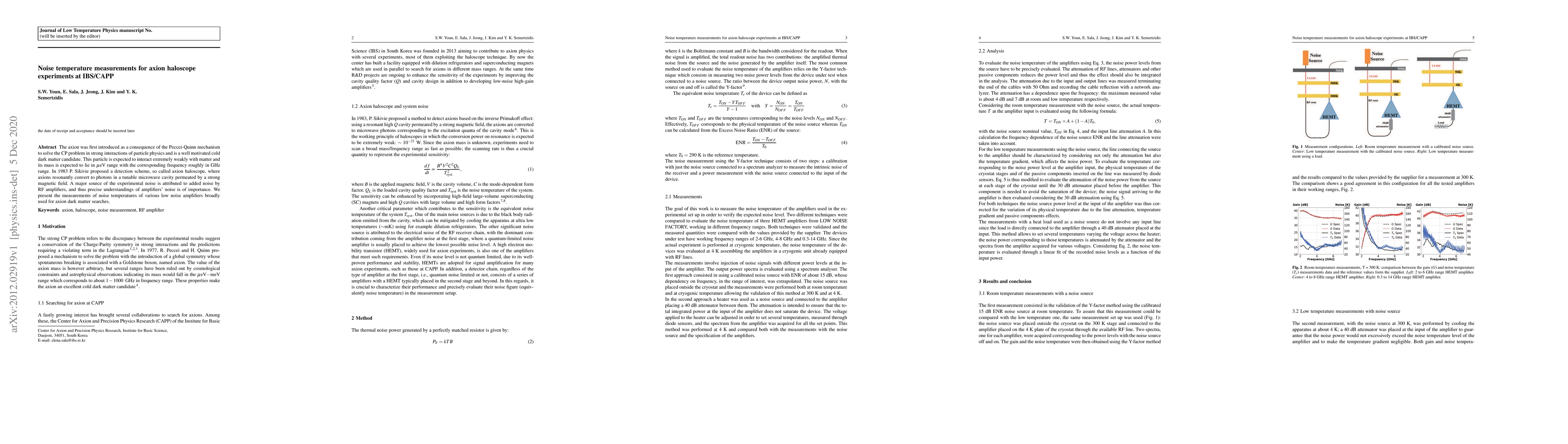 The paper presents detailed noise temperature measurement techniques and validation for HEMT amplifiers used in axion dark matter search experiments, emphasizing the importance of accurate noise characterization for enhancing experimental sensitivity.