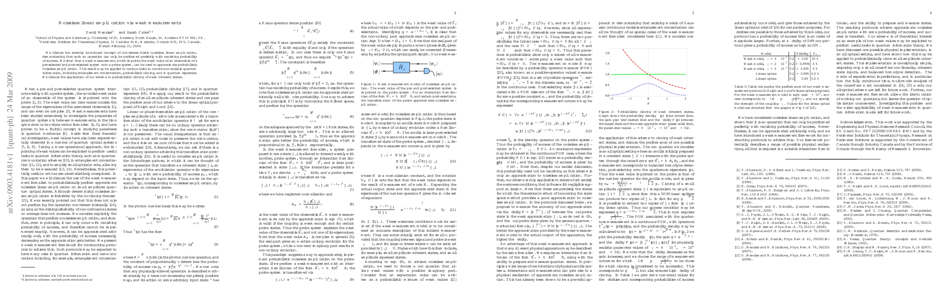 This paper explores the concept of noiseless linear amplification through weak measurements, revealing that perfect amplification is improbable. It demonstrates how weak measurements can probabilistically approximate this amplification, with potential applications in quantum information tasks like entanglement concentration and probabilistic cloning of weak coherent states.