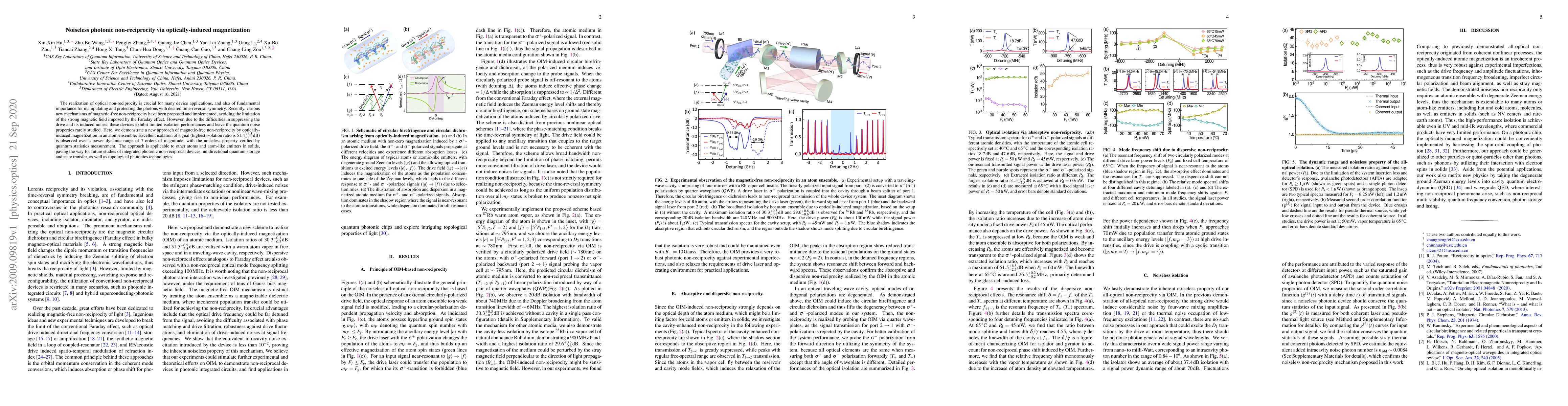 This paper demonstrates a novel method of achieving noiseless photonic non-reciprocity through optically induced magnetization in an atom ensemble, achieving an isolation ratio of 51.4 dB and confirming its noiseless property via quantum statistics. This approach promises applications in integrated photonic devices, quantum storage, and topological photonics.