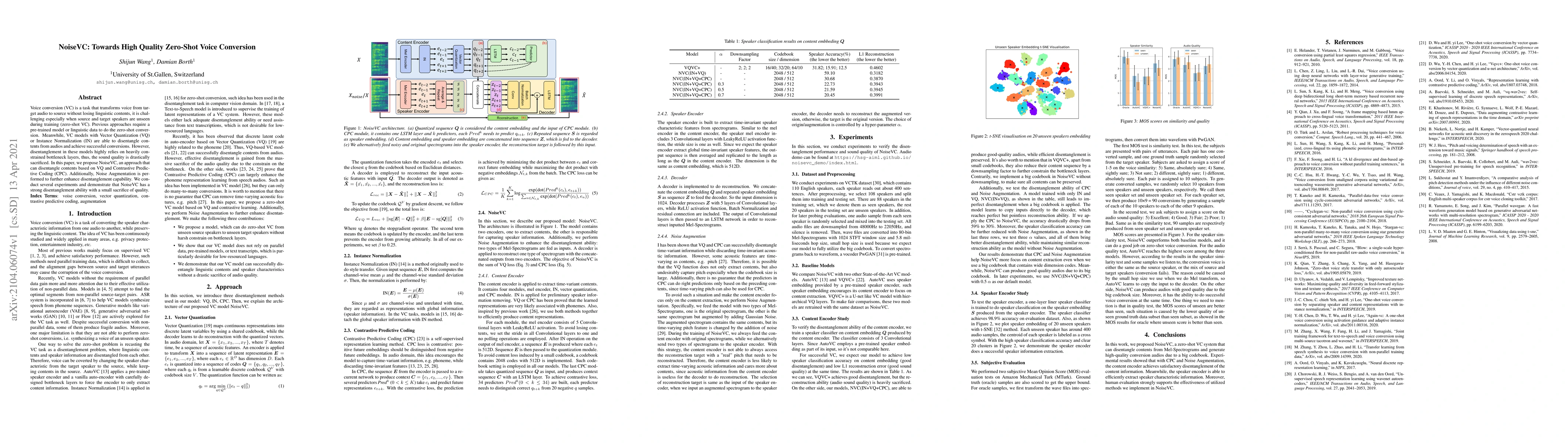 Title: NoiseVC: Towards High Quality Zero-Shot Voice Conversion Summary: This paper introduces NoiseVC, a novel approach combining Vector Quantization and Contrastive Predictive Coding with Noise Augmentation to achieve high-quality zero-shot voice conversion, balancing disentanglement and sound quality.
