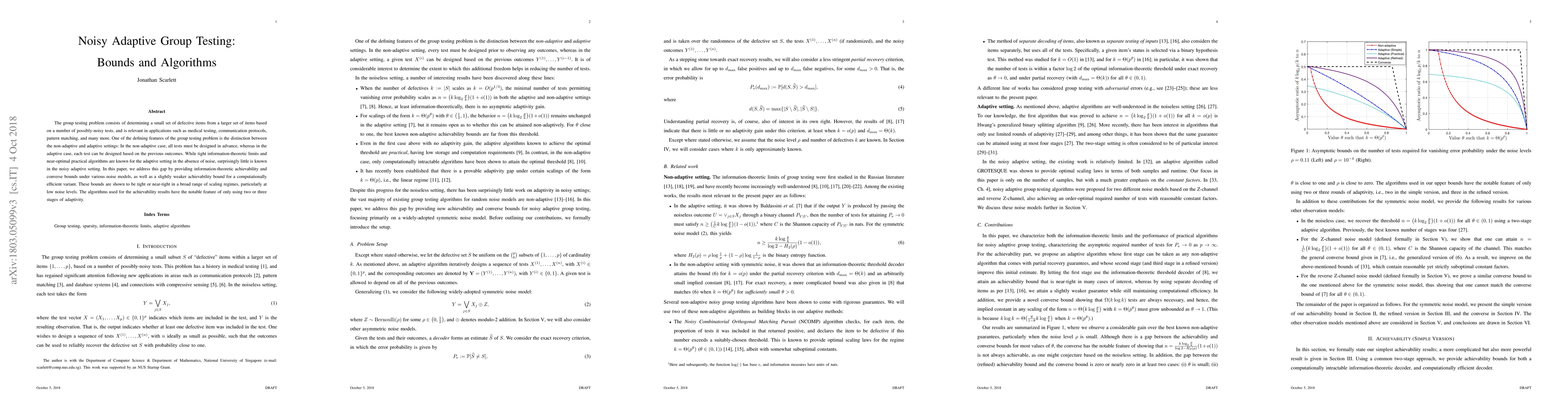 This paper investigates the noisy adaptive group testing problem, providing information-theoretic bounds and near-optimal algorithms. It addresses the gap in knowledge for noisy scenarios, showing tight bounds under various noise models, particularly effective at low noise levels, and utilizing only two or three stages of adaptivity.
