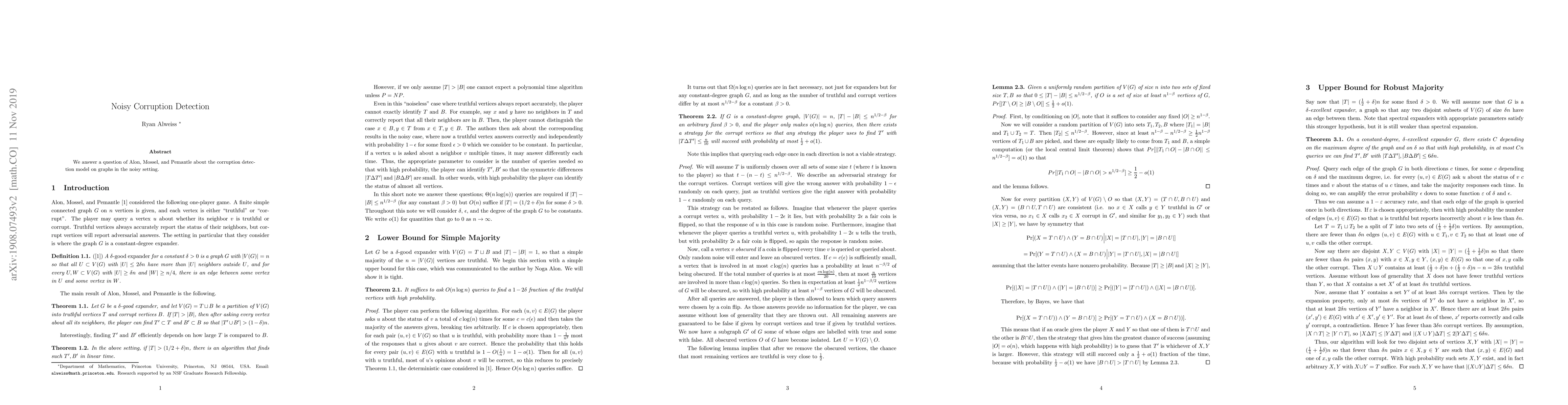 We answer a question of Alon, Mossel, and Pemantle about the corruption detection model on graphs in the noisy setting.