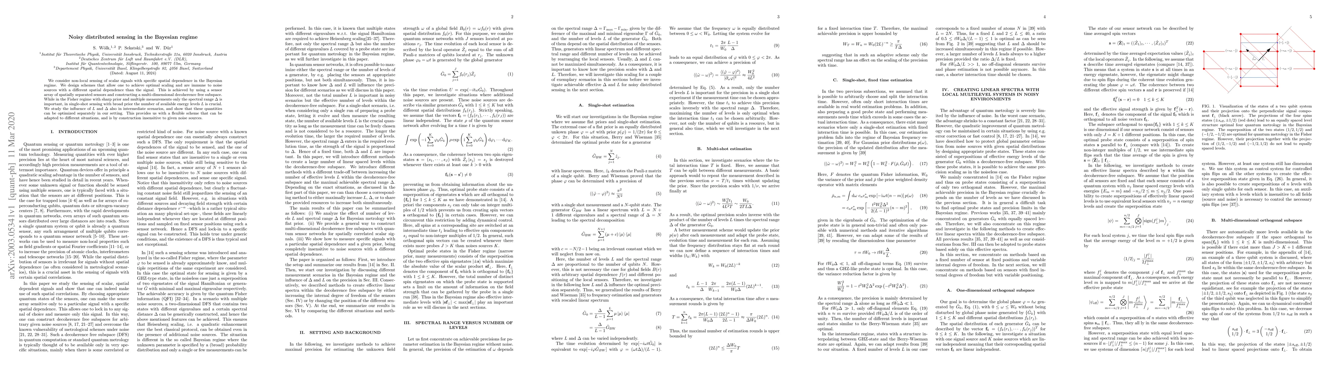 We consider non-local sensing of scalar signals with specific spatial dependence in the Bayesian regime. We design schemes that allow one to achieve optimal scaling and are immune to noise sources with a different spatial dependence than the signal. This is achieved by using a sensor array of spatially separated sensors and constructing a multi-dimensional decoherence free subspace. While in the Fisher regime with sharp prior and multiple measurements only the spectral range $\Delta$ is important, in single-shot sensing with broad prior the number of available energy levels $L$ is crucial. We study the influence of $L$ and $\Delta$ also in intermediate scenarios, and show that these quantities can be optimized separately in our setting. This provides us with a flexible scheme that can be adapted to different situations, and is by construction insensitive to given noise sources.