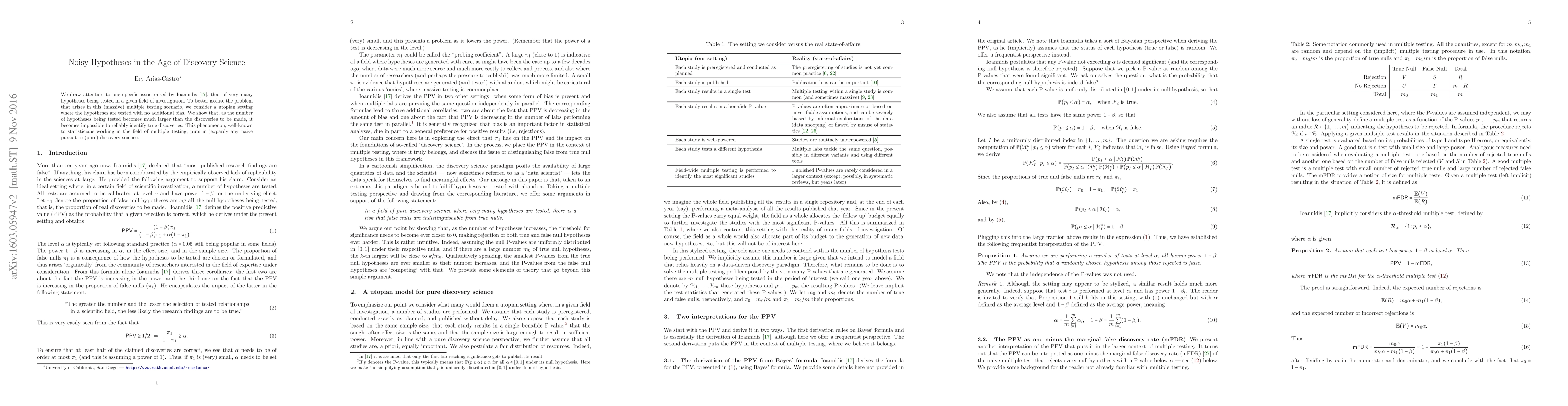 We draw attention to one specific issue raised by Ioannidis (2005), that of very many hypotheses being tested in a given field of investigation. To better isolate the problem that arises in this (massive) multiple testing scenario, we consider a utopian setting where the hypotheses are tested with no additional bias. We show that, as the number of hypotheses being tested becomes much larger than the discoveries to be made, it becomes impossible to reliably identify true discoveries. This phenomenon, well-known to statisticians working in the field of multiple testing, puts in jeopardy any naive pursuit in (pure) discovery science.