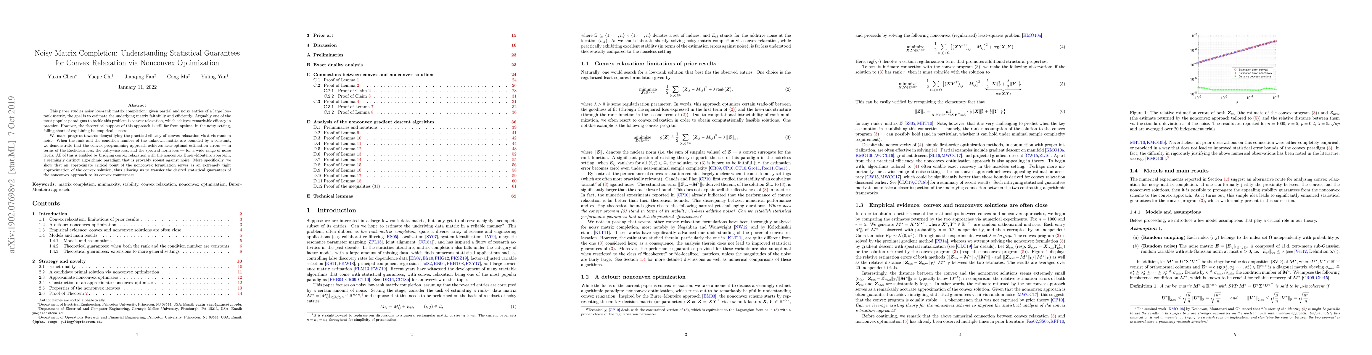 This paper investigates the statistical guarantees of convex relaxation for noisy low-rank matrix completion, demonstrating near-optimal estimation errors through a connection to the robust nonconvex Burer-Monteiro approach. It shows that an approximate critical point of the nonconvex method tightly approximates the convex solution, transferring statistical guarantees from the nonconvex to the convex paradigm.