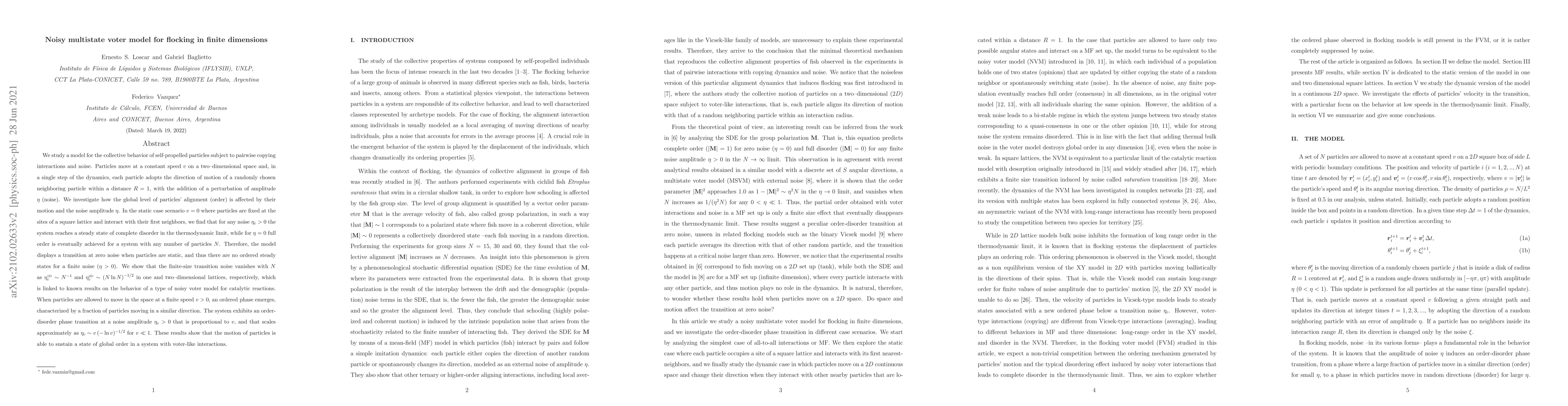 The research employed a noisy multistate voter model for flocking in finite dimensions.