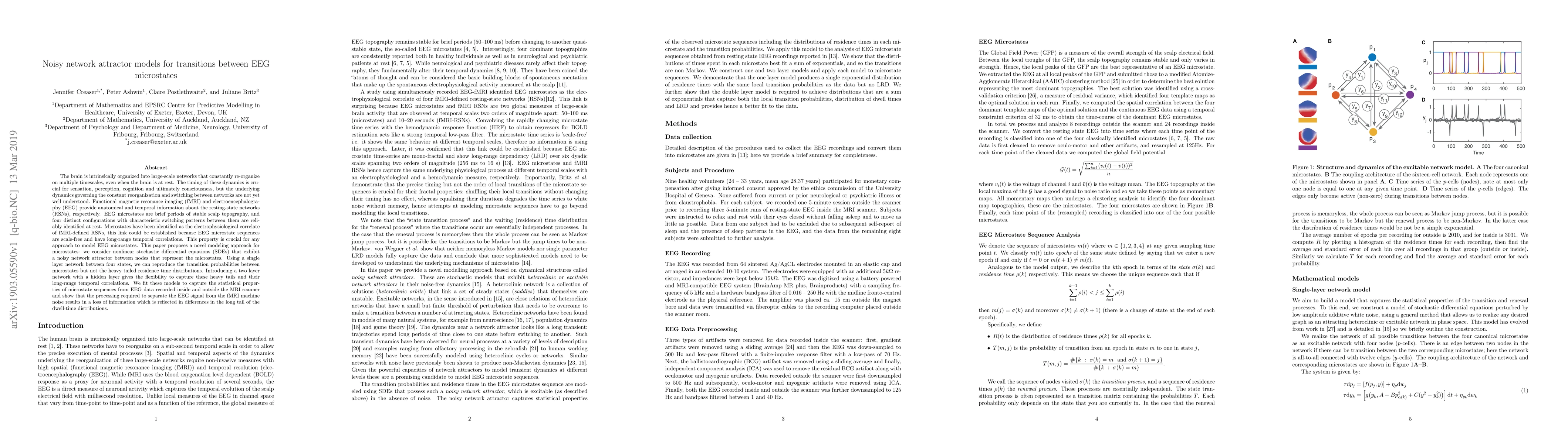 Researchers propose a novel modeling approach for EEG microstates using noisy network attractor models to capture their dynamics and temporal correlations. These models can reproduce the transition probabilities between microstates but struggle with heavy-tailed residence time distributions.