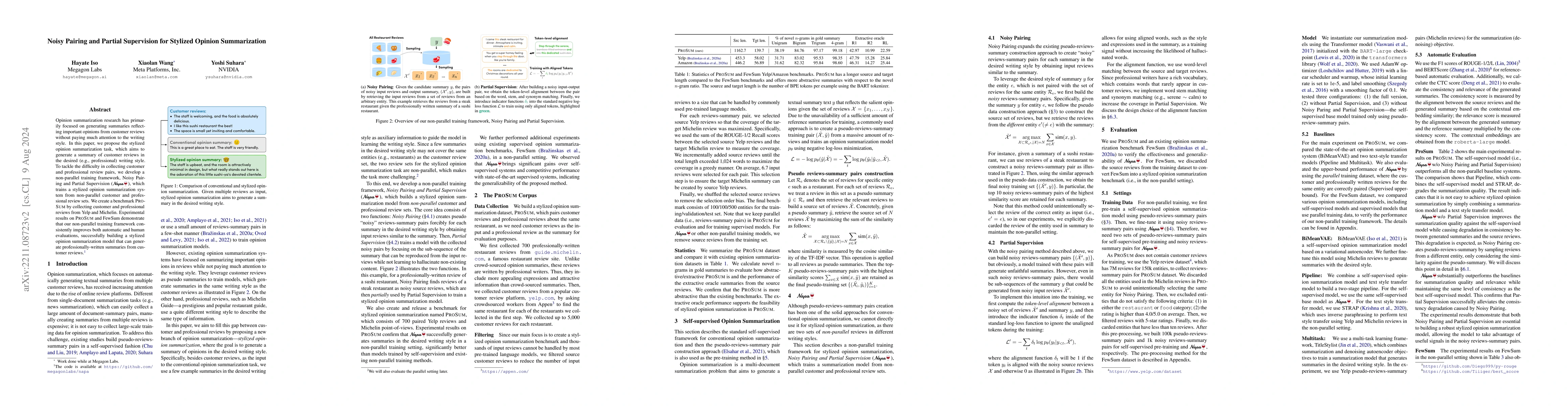 This paper introduces NAPA, a weakly supervised framework for opinion summarization that leverages noisy pairing and partial supervision to generate summaries without requiring paired customer and professional reviews. Experimental results demonstrate improved automatic evaluation metrics and more reader-attractive summaries.