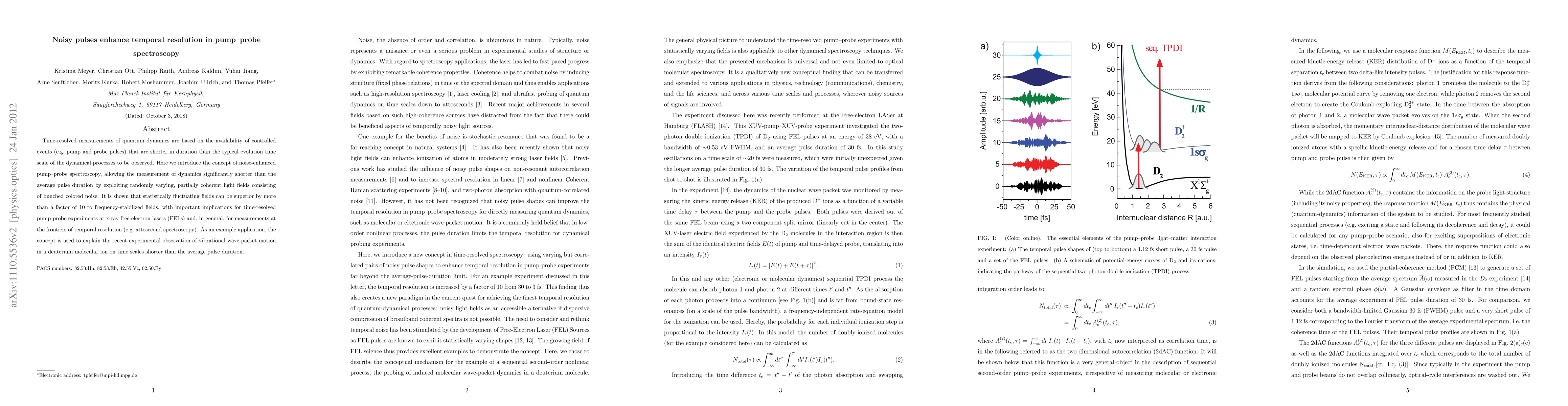 The paper presents the concept and physical mechanism of noise-enhanced temporal resolution in pump-probe experiments, demonstrating its applicability to FEL pulses and attosecond pulses.