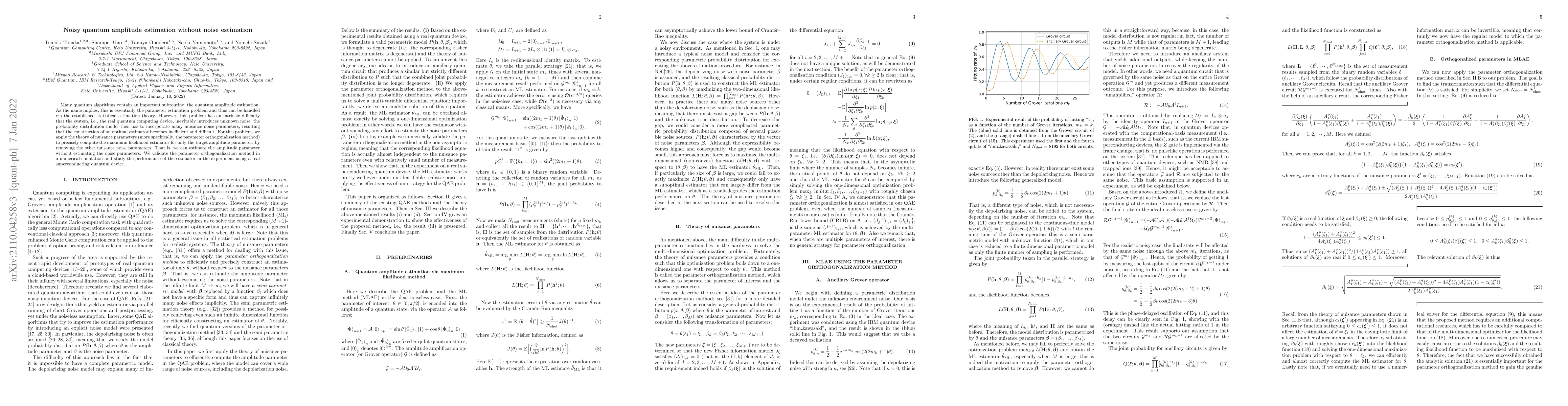 This paper proposes a method for quantum amplitude estimation that avoids the need to estimate noise parameters, using the parameter orthogonalization technique to focus on the target amplitude parameter. The approach is validated through numerical simulations and tested on a superconducting quantum device.