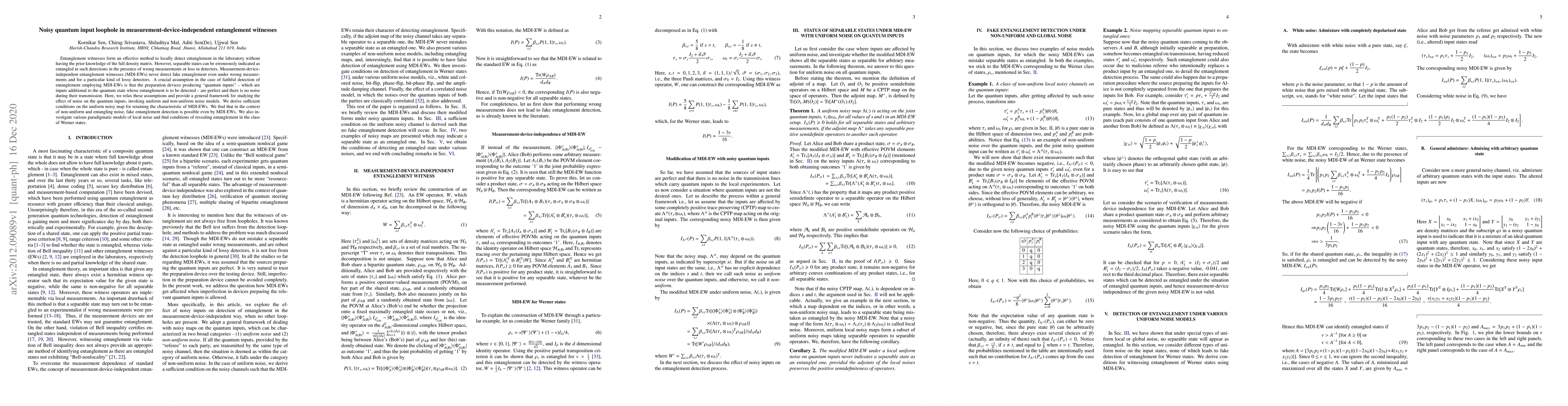 Entanglement witnesses form an effective method to locally detect entanglement in the laboratory without having the prior knowledge of the full density matrix. However, separable states can be erroneously indicated as entangled in such detections in the presence of wrong measurements or loss in detectors. Measurement-device-independent entanglement witnesses (MDI-EWs) never detect fake entanglement even under wrong measurements and for a particular kind of lossy detectors. A crucial assumption in the case of faithful detection of entanglement employing MDI-EWs is that the preparation devices producing "quantum inputs" - which are inputs additional to the quantum state whose entanglement is to be detected - are perfect and there is no noise during their transmission. Here, we relax these assumptions and provide a general framework for studying the effect of noise on the quantum inputs, invoking uniform and non-uniform noise models. We derive sufficient conditions on the uniform noisy map for retaining the characteristic of MDI-EWs. We find that in the context of non-uniform and entangling noise, fake entanglement detection is possible even by MDI-EWs. We also investigate various paradigmatic models of local noise and find conditions of revealing entanglement in the class of Werner states.