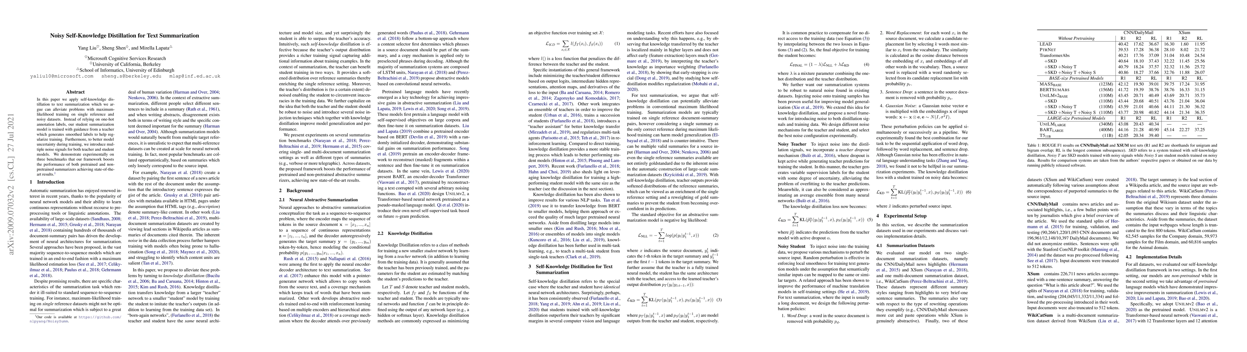 Researchers developed a new framework for text summarization that improves performance on noisy datasets using self-knowledge distillation with multiple noise signals. The approach achieves state-of-the-art results on three benchmarks, outperforming both pre-trained and non-pretrained summarizers.