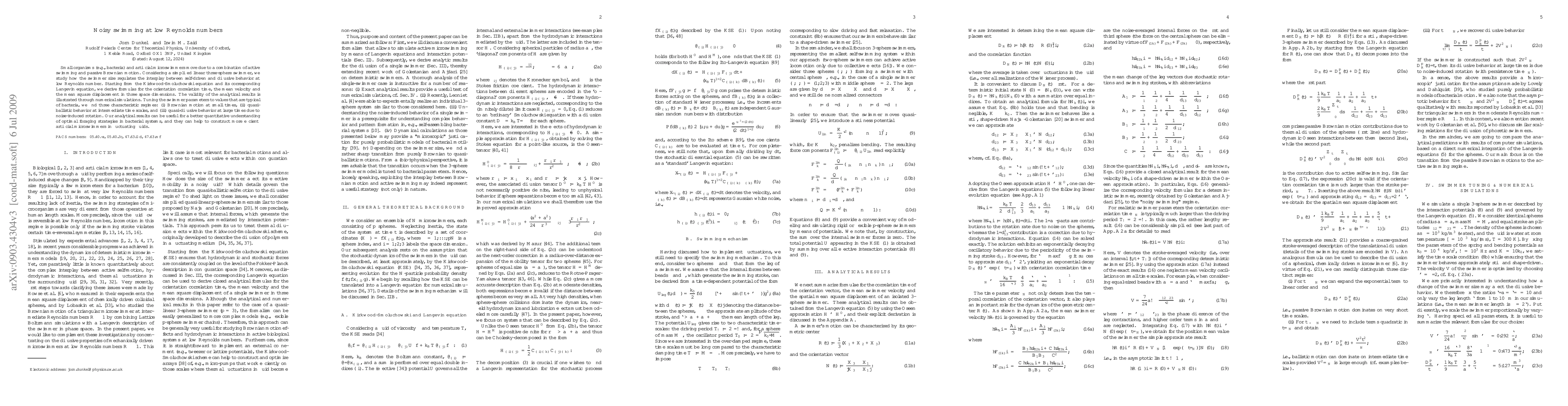 This paper investigates the dynamics of small swimmers like bacteria under low Reynolds number conditions, deriving analytical formulas for their behavior and identifying three regimes: Brownian motion, quasi-ballistic, and quasi-diffusive. The findings provide insights into bacterial foraging strategies and the design of efficient microswimmers.