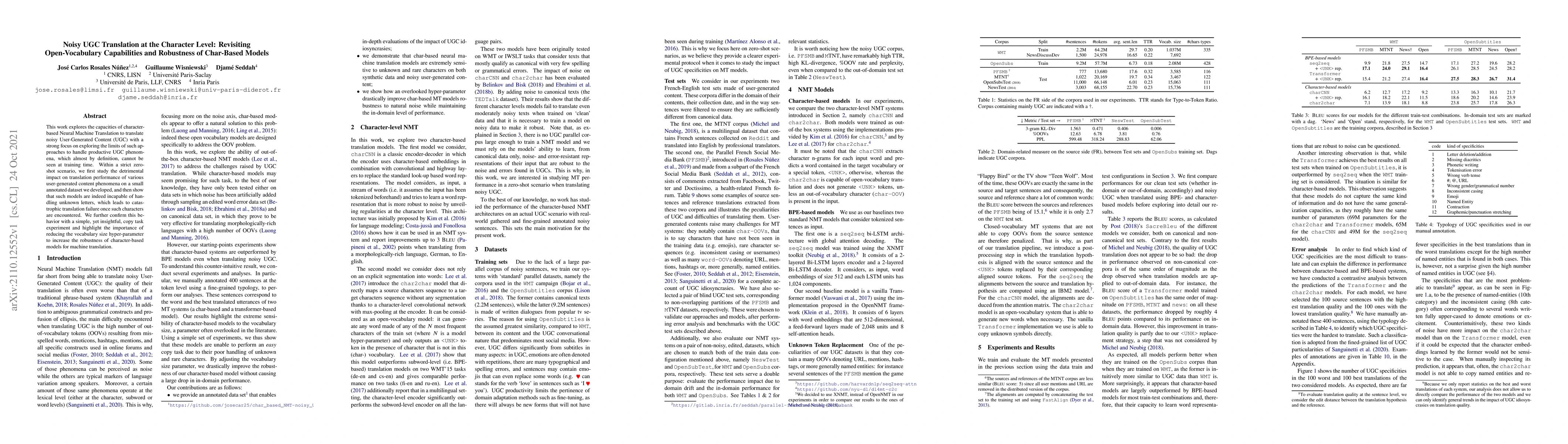 This paper investigates the limitations of character-based Neural Machine Translation models in handling noisy User-Generated Content, revealing their inability to manage unknown characters and resulting in catastrophic translation failures. The study emphasizes the need to reduce the vocabulary size to enhance the robustness of these models for better translation performance.