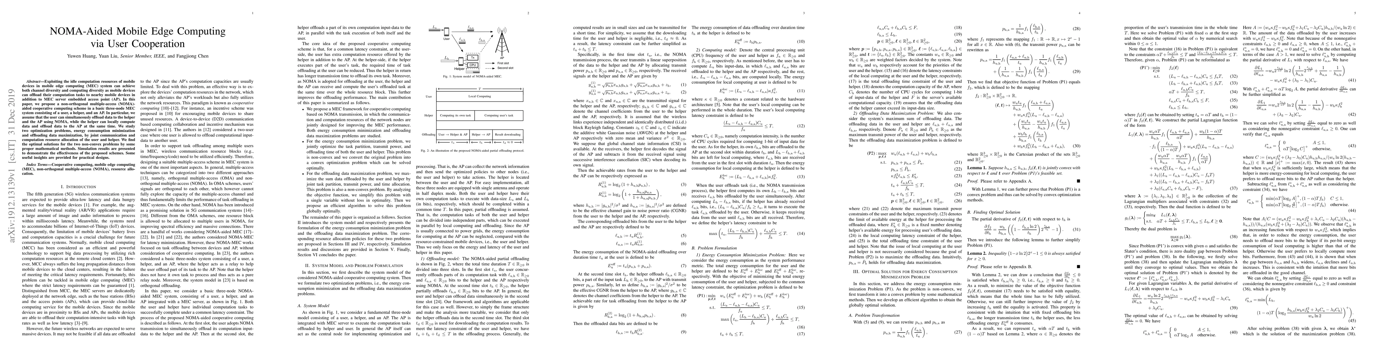 This paper proposes a NOMA-aided cooperative computing scheme in a mobile edge computing system, where a user offloads tasks to both a helper and an access point. It optimizes energy consumption and data offloading through joint resource allocation, finding optimal solutions for two non-convex problems and demonstrating effectiveness via simulations.