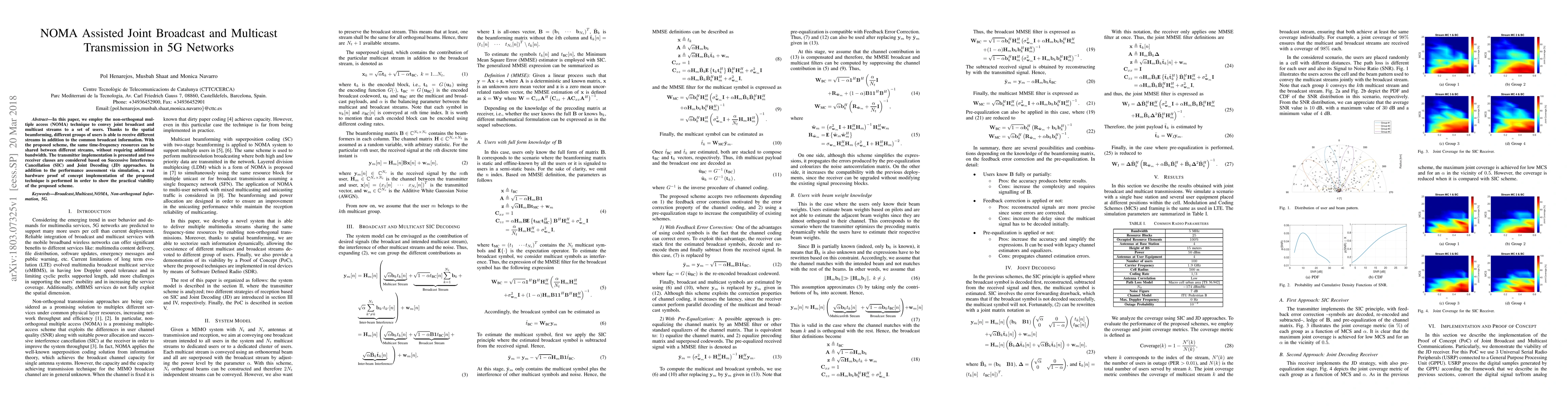 This paper explores NOMA for joint broadcast and multicast in 5G networks, utilizing spatial beamforming to deliver different streams to user groups while sharing time-frequency resources. It evaluates performance via simulations and demonstrates practical viability through a real hardware implementation.
