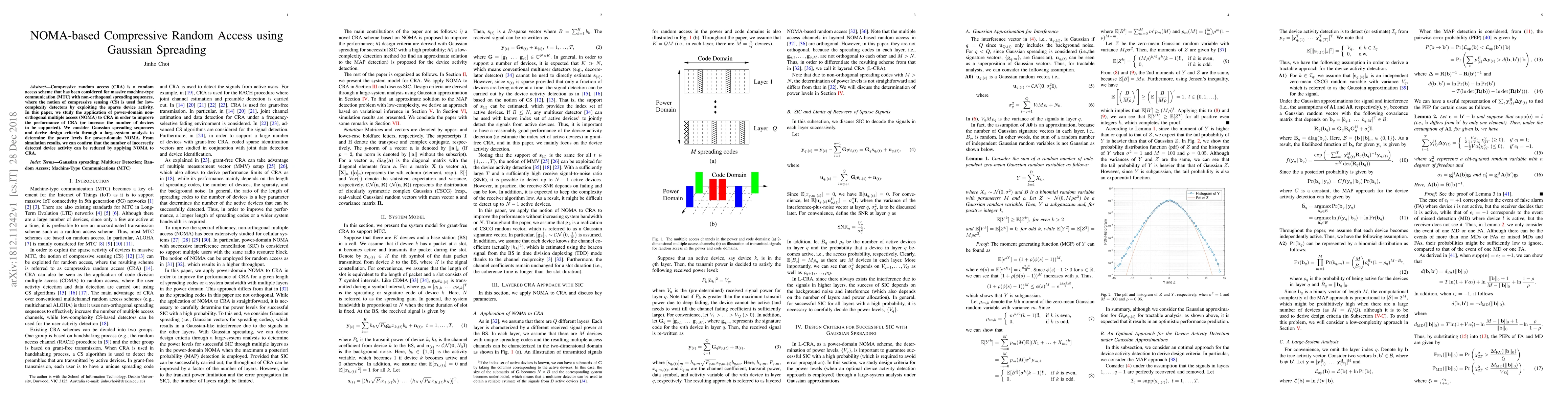 This paper explores the integration of power-domain non-orthogonal multiple access (NOMA) into compressive random access (CRA) to enhance device support and performance, using Gaussian spreading sequences. Simulation results show that NOMA reduces incorrectly detected device activity.