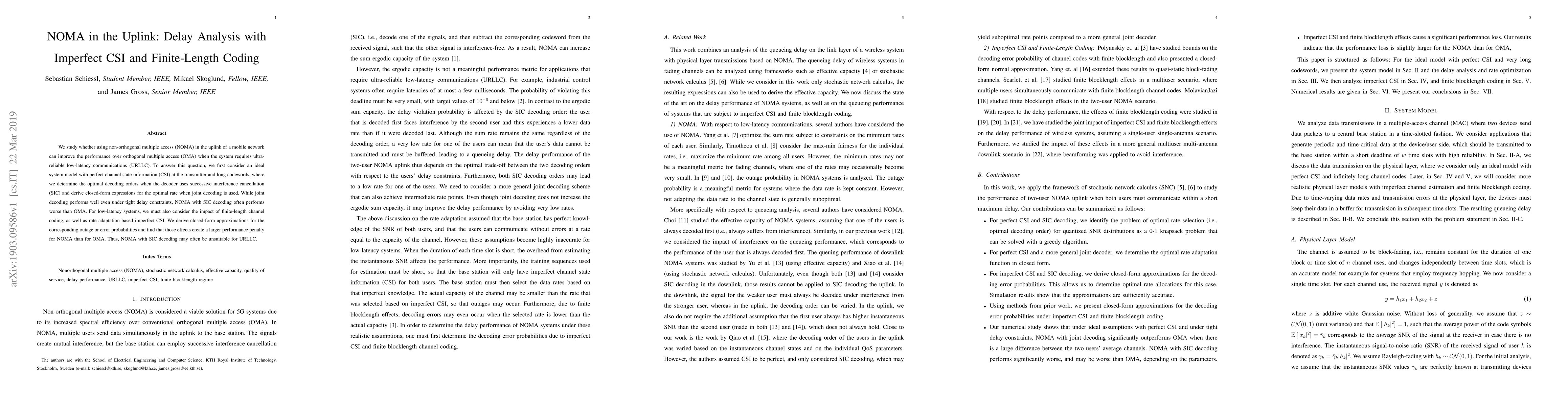 This paper investigates the performance of NOMA versus OMA in uplink mobile networks under ultra-reliable low-latency communication requirements, finding that NOMA with successive interference cancellation often performs worse than OMA due to the effects of imperfect channel state information and finite-length coding.