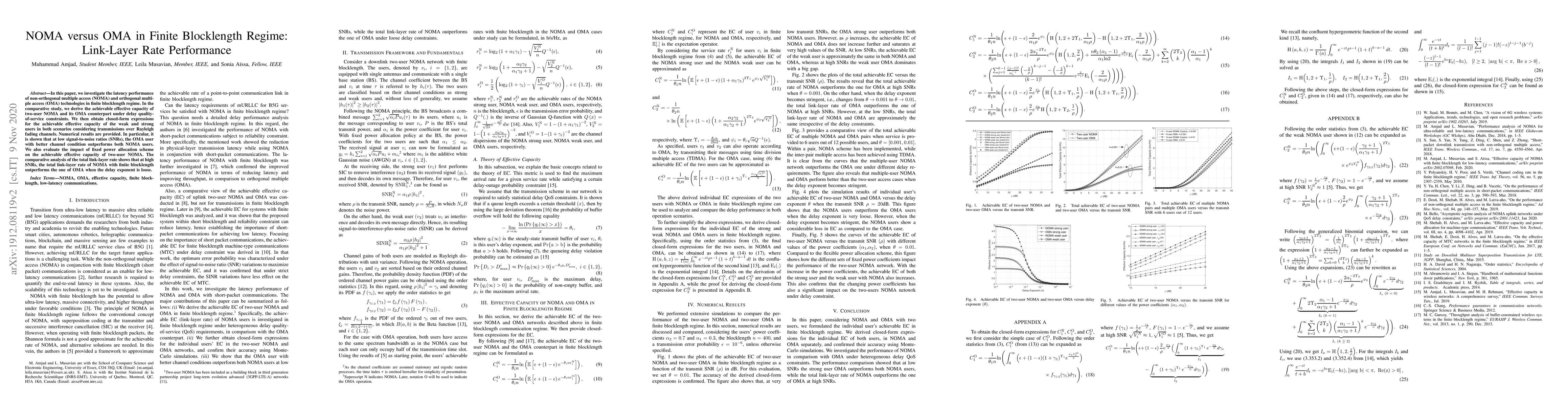 This paper compares the latency performance of NOMA and OMA in finite blocklength scenarios, deriving closed-form expressions for achievable effective capacity under Rayleigh fading. It finds that at low SNRs, OMA outperforms NOMA, while at high SNRs, NOMA achieves better total link-layer rate with loose delay constraints.