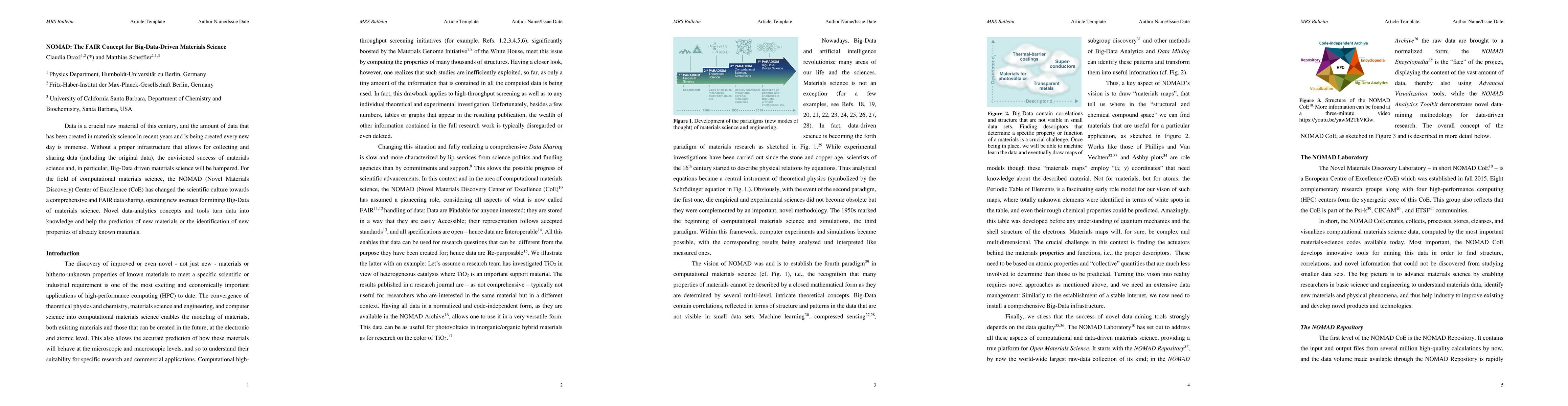 The NOMAD Center of Excellence promotes FAIR data sharing in materials science, transforming scientific culture and enabling Big-Data-driven discoveries through advanced data analytics and tools. This infrastructure is essential for the successful advancement of computational materials science.