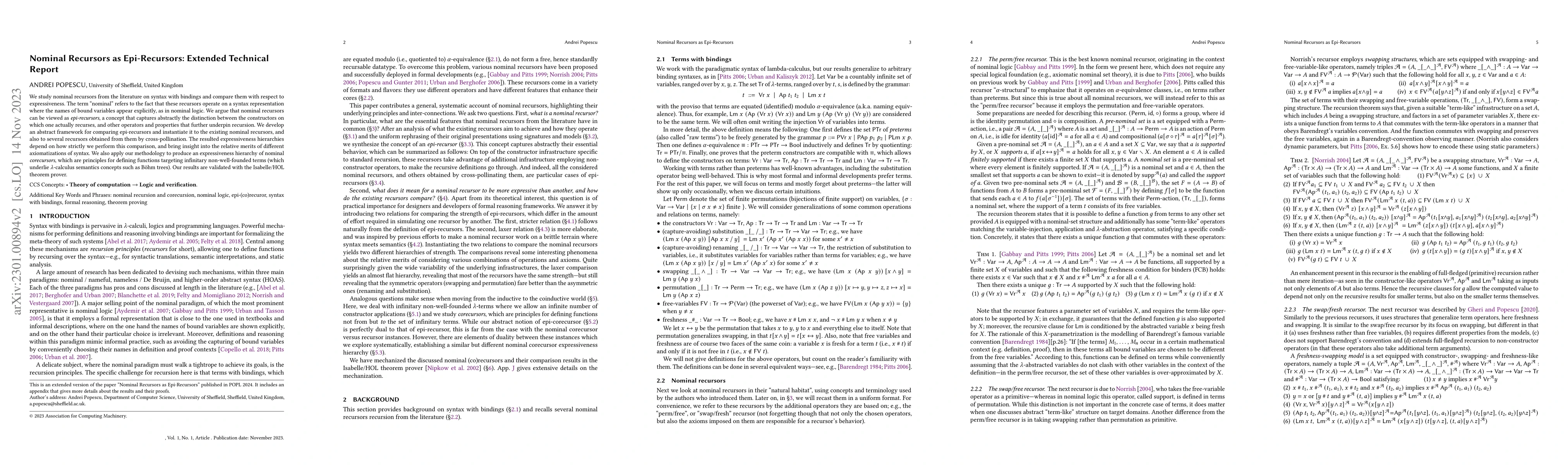 This paper explores the expressiveness of nominal recursors in syntax with explicit bindings, demonstrating that they can be viewed as epi-recursors. It develops a framework for comparing these recursors and validates the results using the Isabelle/HOL theorem prover, revealing insights into the relative merits of different syntax axiomatizations.