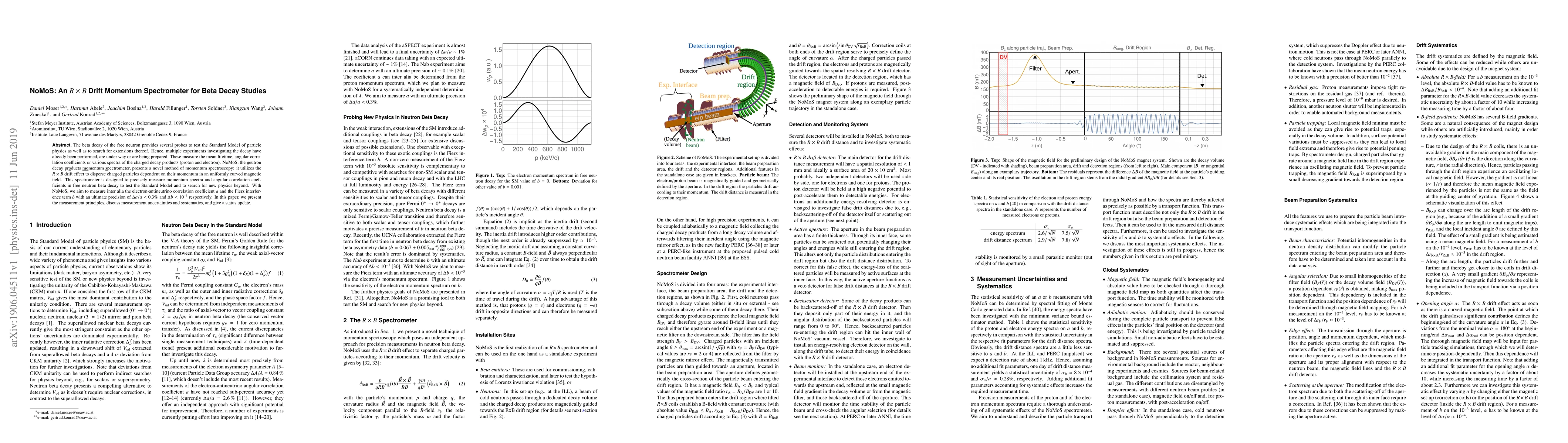 Researchers have developed a new device called NoMoS to measure the momentum of charged particles in beta decay with high precision, aiming to test the Standard Model of particle physics and search for new physics beyond.