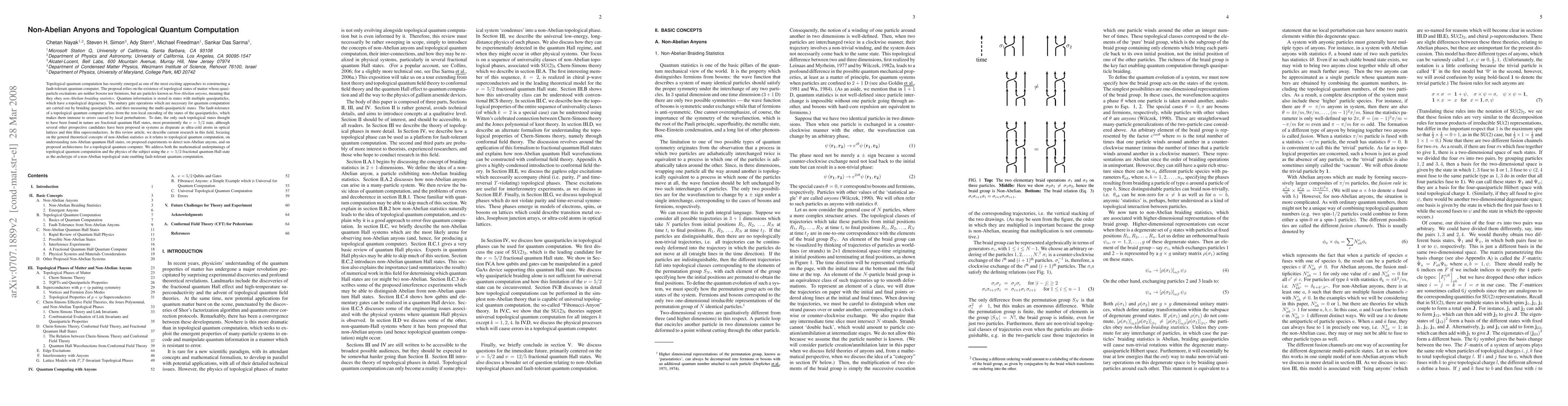 This paper reviews theoretical and experimental aspects of topological quantum computation using non-Abelian anyons. It focuses on how these quasiparticles, which obey non-Abelian braiding statistics, enable fault-tolerant quantum computing through their topologically protected states, particularly exemplified by the ν=5/2 fractional quantum Hall state.