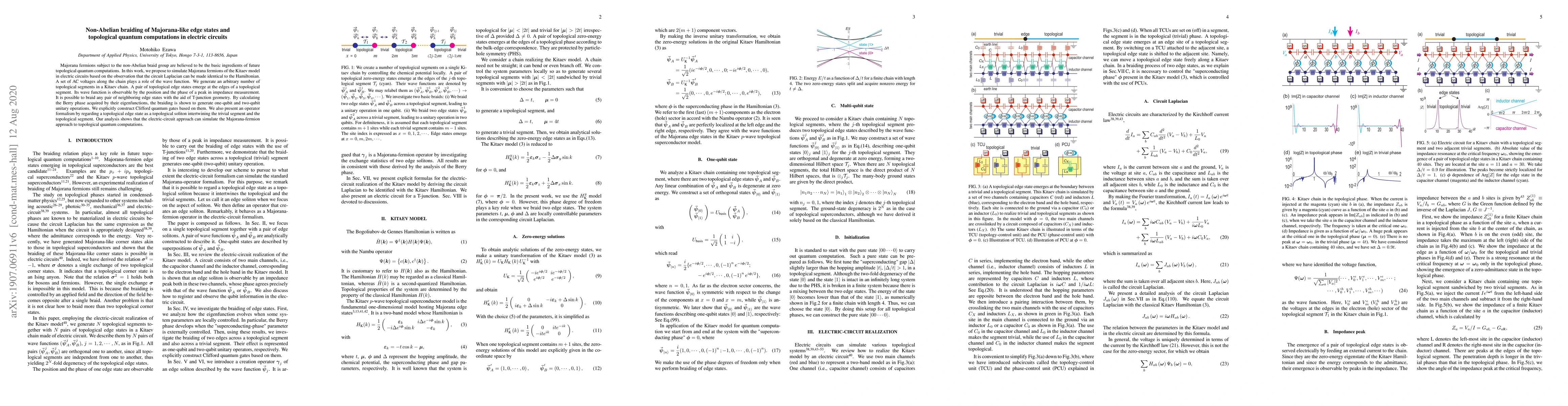 This paper proposes a method to simulate Majorana fermions in electric circuits, using the circuit Laplacian to match the Hamiltonian of the Kitaev model. The study demonstrates braiding of topological edge states in T-junction circuits, generating unitary operations and constructing Clifford quantum gates, thus showing the potential for topological quantum computations in electric circuits.
