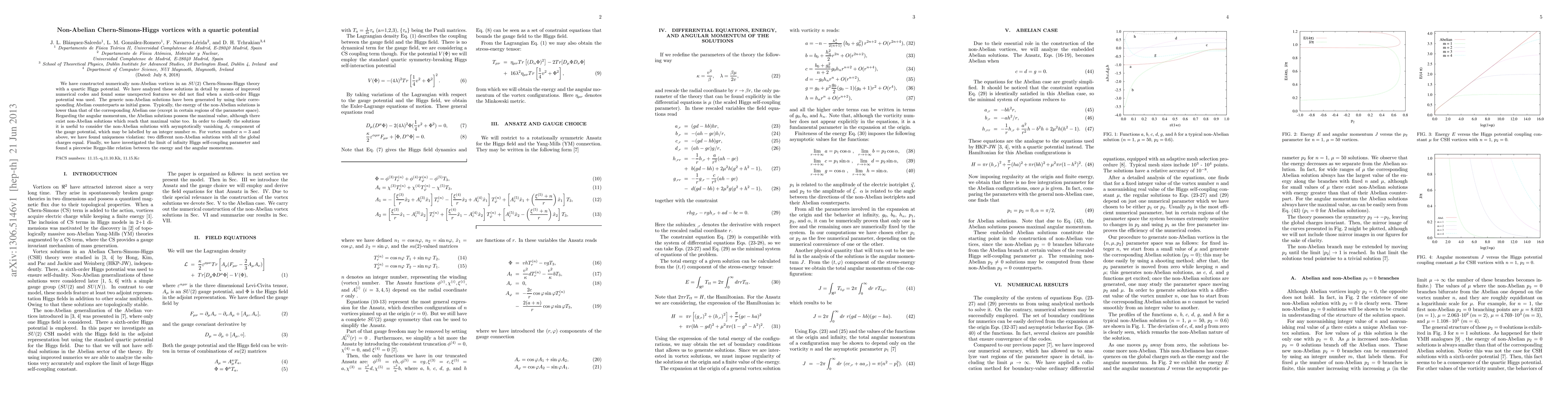 Researchers created non-Abelian vortices in a specific type of physics theory with a quartic potential, finding unique solutions with lower energy and varying angular momentum, and discovered a piecewise Regge-like relation between energy and angular momentum at high Higgs self-coupling.