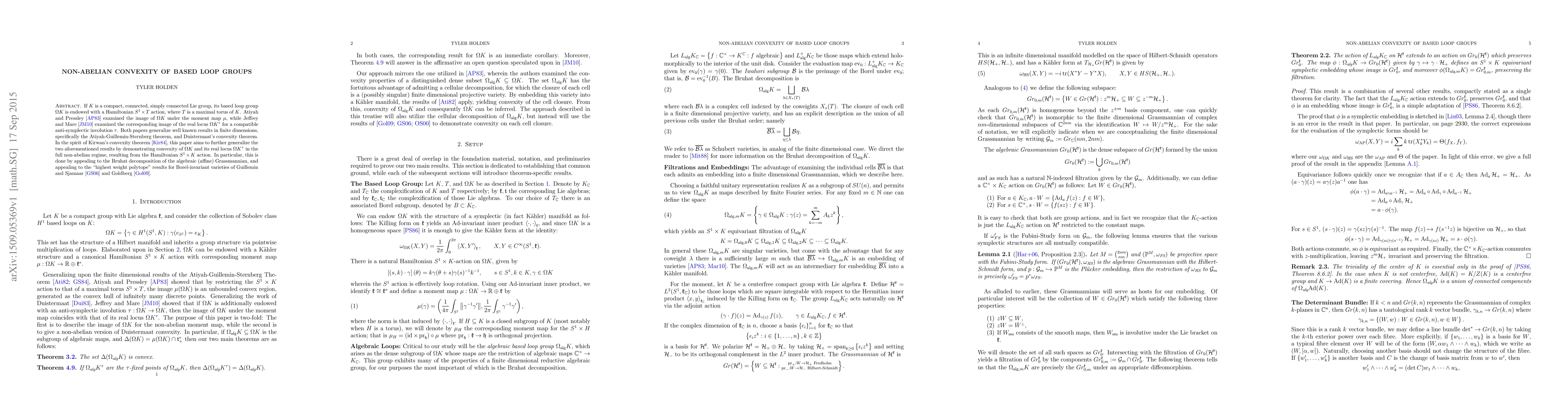 This paper generalizes Atiyah-Guillemin-Sternberg and Duistermaat's convexity theorems to the non-abelian setting of based loop groups, proving convexity under the Hamiltonian $S^1 \times K$ action using the Bruhat decomposition and highest weight polytope results.