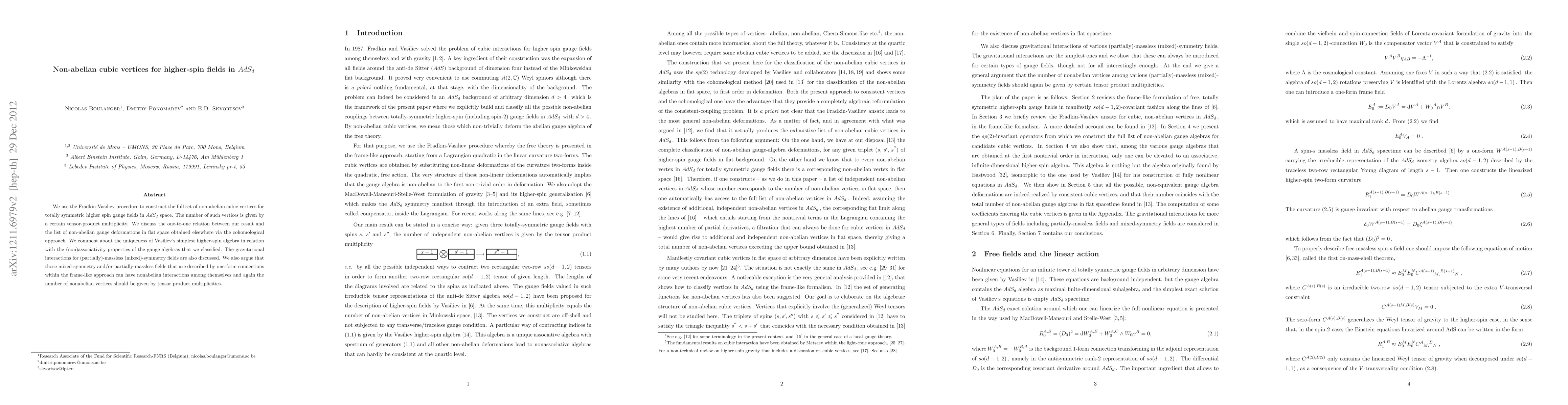 This paper constructs non-abelian cubic vertices for higher-spin fields using the Fradkin-Vasiliev method in anti-de Sitter space, relating these to flat space gauge deformations. It also discusses the uniqueness of Vasiliev's algebra and the nonabelian interactions of mixed-symmetry and partially-massless fields.