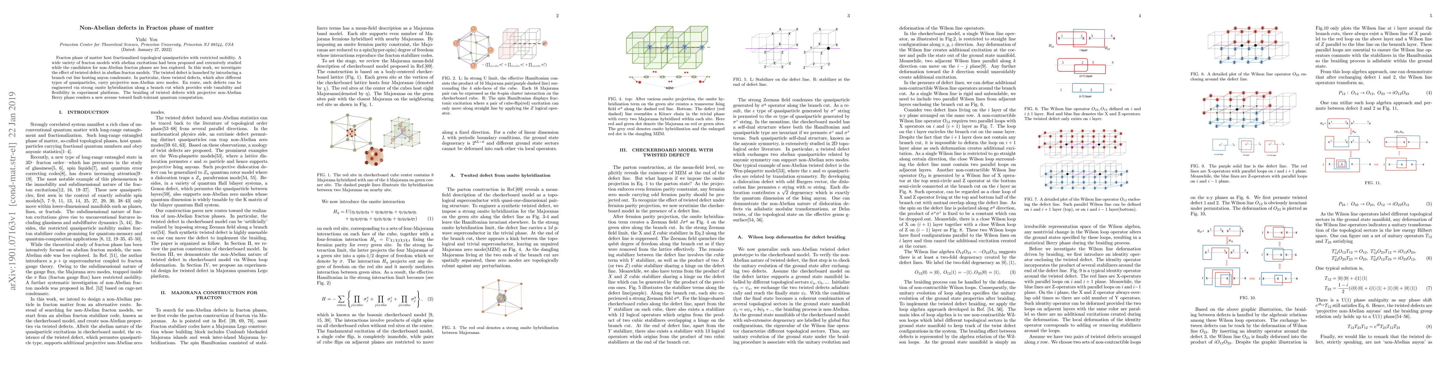This paper explores non-Abelian defects in the fracton phase of matter, focusing on twisted defects that introduce projective non-Abelian zero modes, enabling fault-tolerant quantum computation through braiding. These defects can be engineered via strong onsite hybridization, offering experimental flexibility.
