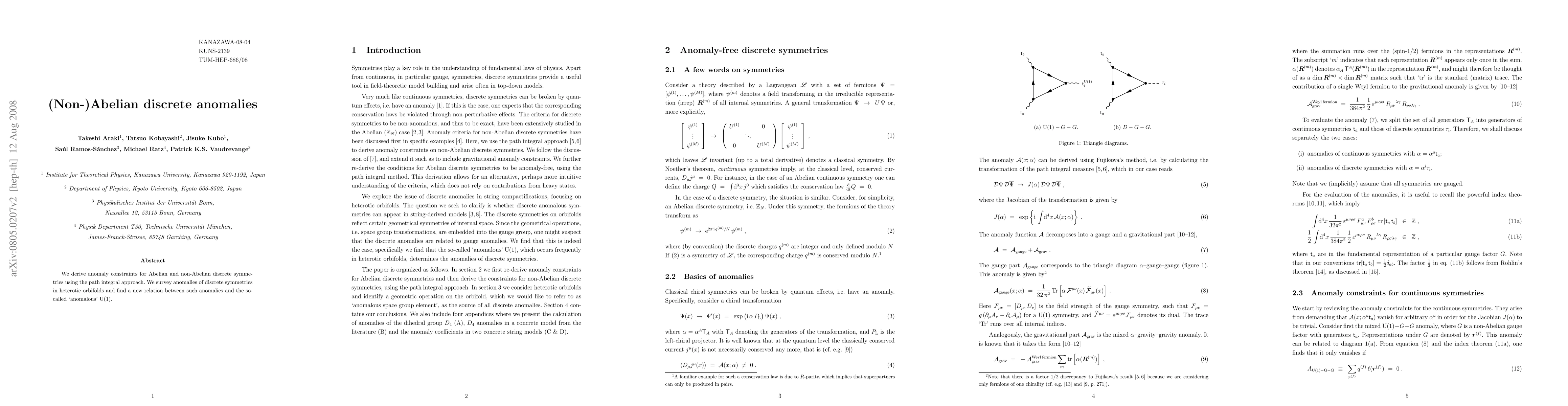 This paper derives anomaly constraints for both Abelian and non-Abelian discrete symmetries using path integral methods, focusing on heterotic orbifolds and uncovering a new relationship between these anomalies and the "anomalous" U(1).