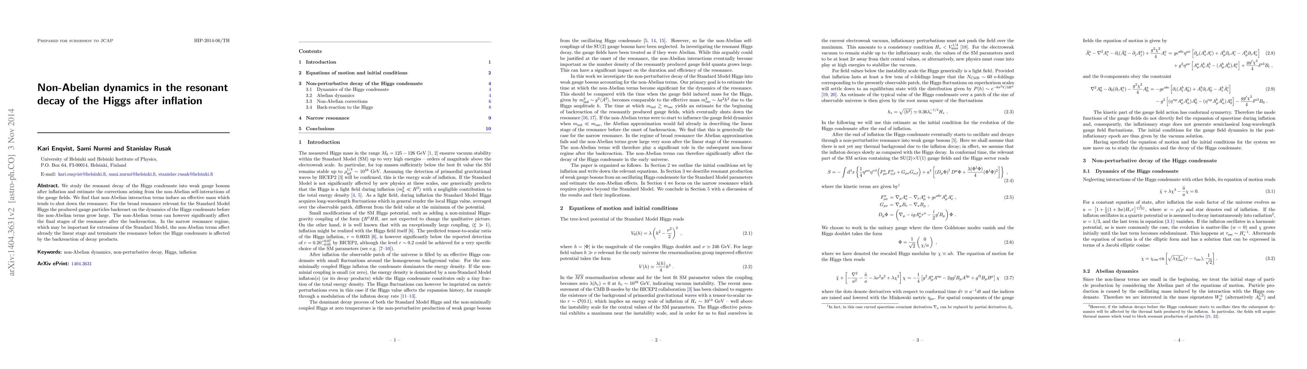 Research investigates how non-Abelian interactions affect Higgs resonance after inflation, finding that these effects can either terminate the resonance before it affects the Higgs or significantly impact its final stages.