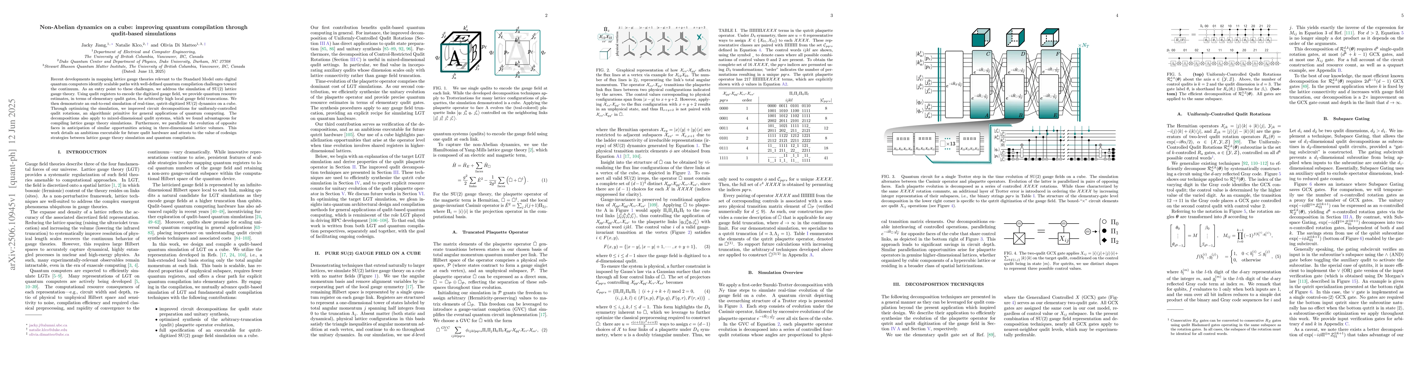 Recent developments in mapping lattice gauge theories relevant to the Standard Model onto digital quantum computers identify scalable paths with well-defined quantum compilation challenges toward the continuum. As an entry point to these challenges, we address the simulation of SU(2) lattice gauge theory. Using qudit registers to encode the digitized gauge field, we provide quantum resource estimates, in terms of elementary qudit gates, for arbitrarily high local gauge field truncations. We then demonstrate an end-to-end simulation of real-time, qutrit-digitized SU(2) dynamics on a cube. Through optimizing the simulation, we improved circuit decompositions for uniformly-controlled qudit rotations, an algorithmic primitive for general applications of quantum computing. The decompositions also apply to mixed-dimensional qudit systems, which we found advantageous for compiling lattice gauge theory simulations. Furthermore, we parallelize the evolution of opposite faces in anticipation of similar opportunities arising in three-dimensional lattice volumes. This work details an ambitious executable for future qudit hardware and attests to the value of codesign strategies between lattice gauge theory simulation and quantum compilation.
