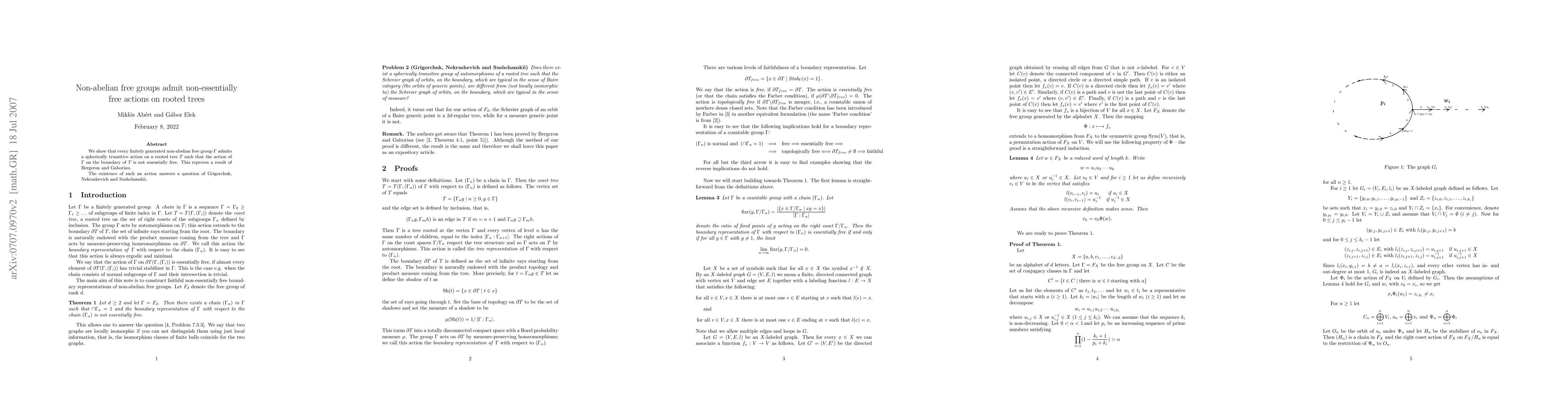 We show that every countable non-abelian free group $\Gamma $ admits a spherically transitive action on a rooted tree $T$ such that the action of $\Gamma $ on the boundary of $T$ is not essentially free. This reproves a result of Bergeron and Gaboriau. The existence of such an action answers a question of Grigorchuk, Nekrashevich and Sushchanskii.
