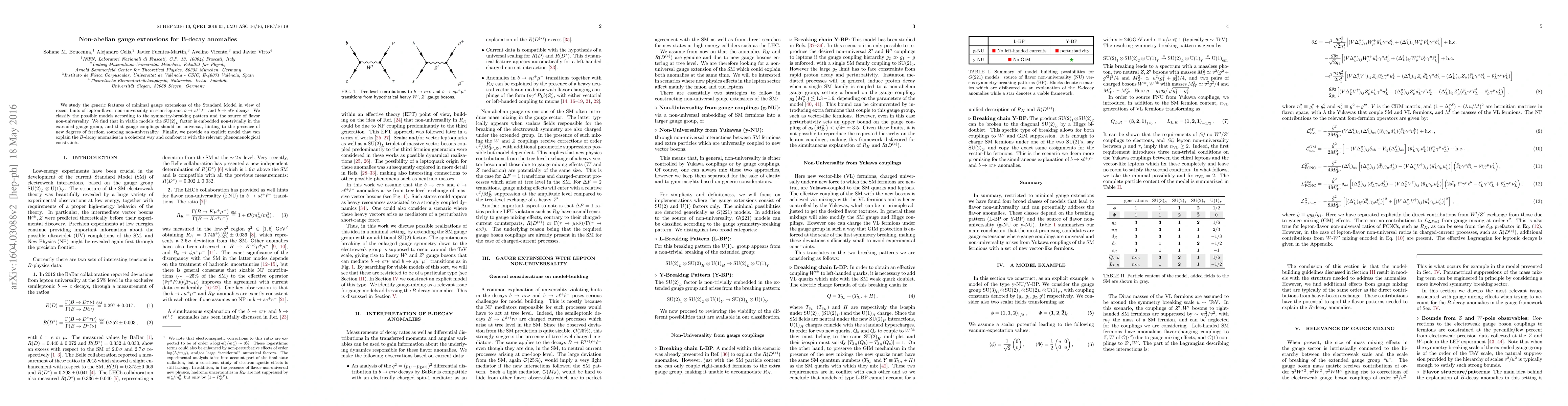 This paper explores minimal gauge extensions of the Standard Model to address recent anomalies in $b$-decay processes, classifying models based on symmetry-breaking patterns and sources of flavor non-universality. It concludes that viable models involve non-trivial embedding of $\mathrm{SU(2)}_L$ and universal gauge couplings, suggesting new degrees of freedom for non-universality, and presents an explicit model that aligns with observed $B$-decay anomalies while satisfying phenomenological constraints.