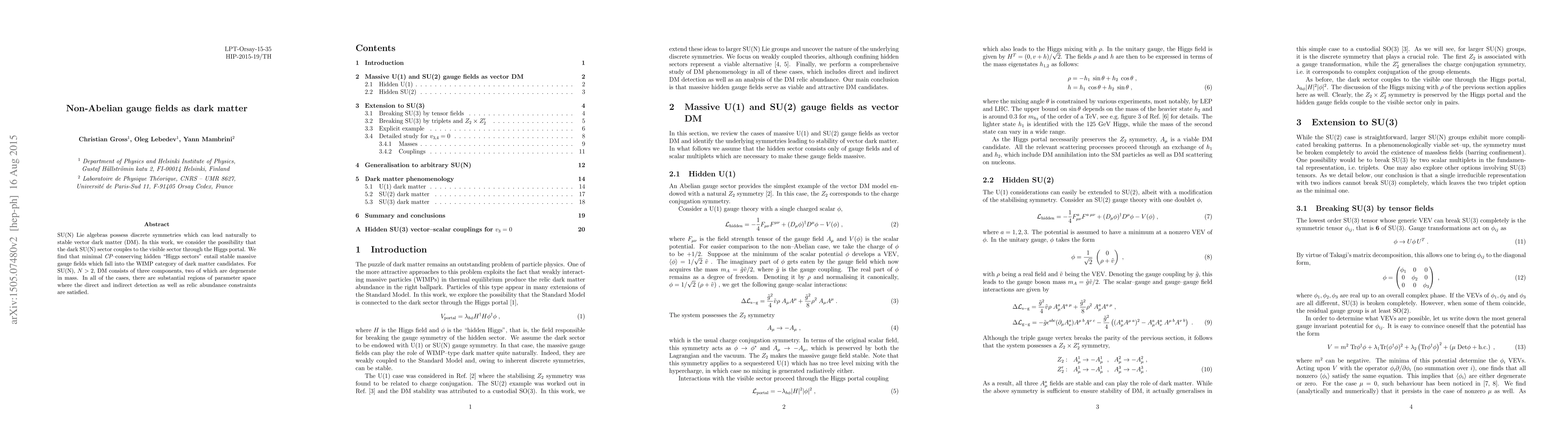 SU(N) Lie algebras possess discrete symmetries which can lead naturally to stable vector dark matter (DM). In this work, we consider the possibility that the dark SU(N) sector couples to the visible sector through the Higgs portal. We find that minimal CP-conserving hidden `Higgs sectors' entail stable massive gauge fields which fall into the WIMP category of dark matter candidates. For SU(N), N>2, DM consists of three components, two of which are degenerate in mass. In all of the cases, there are substantial regions of parameter space where the direct and indirect detection as well as relic abundance constraints are satisfied.
