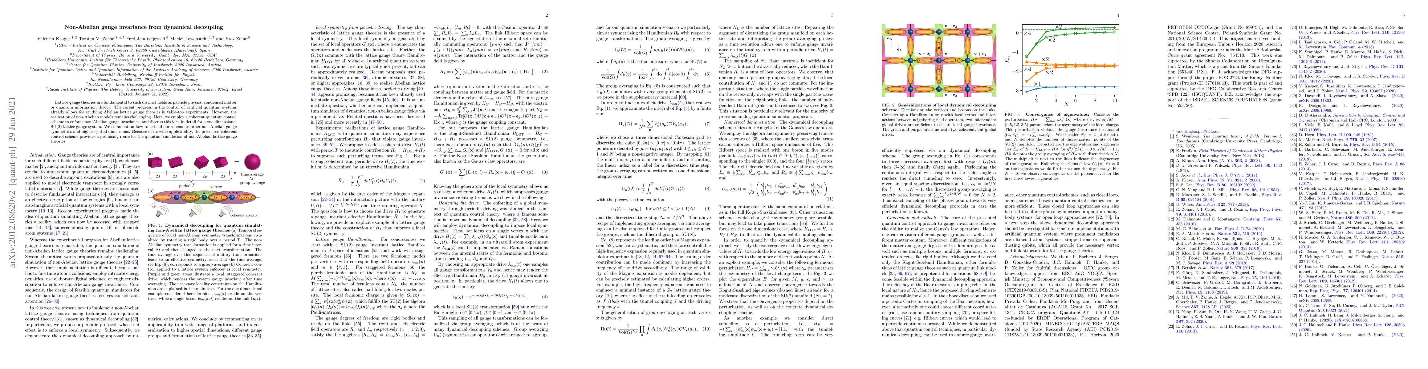 Lattice gauge theories are fundamental to such distinct fields as particle physics, condensed matter or quantum information theory. The recent progress in the control of artificial quantum systems already allows for studying Abelian lattice gauge theories in table-top experiments. However, the realization of non-Abelian models remains challenging. Here, we employ a coherent quantum control scheme to enforce non-Abelian gauge invariance, and discuss this idea in detail for a one dimensional SU(2) lattice gauge system. Finally, we comment on how to extend our scheme to other non-Abelian gauge symmetries and higher spatial dimensions, which summarized, provides a promising route for the quantum simulation of non-Abelian lattice gauge theories.