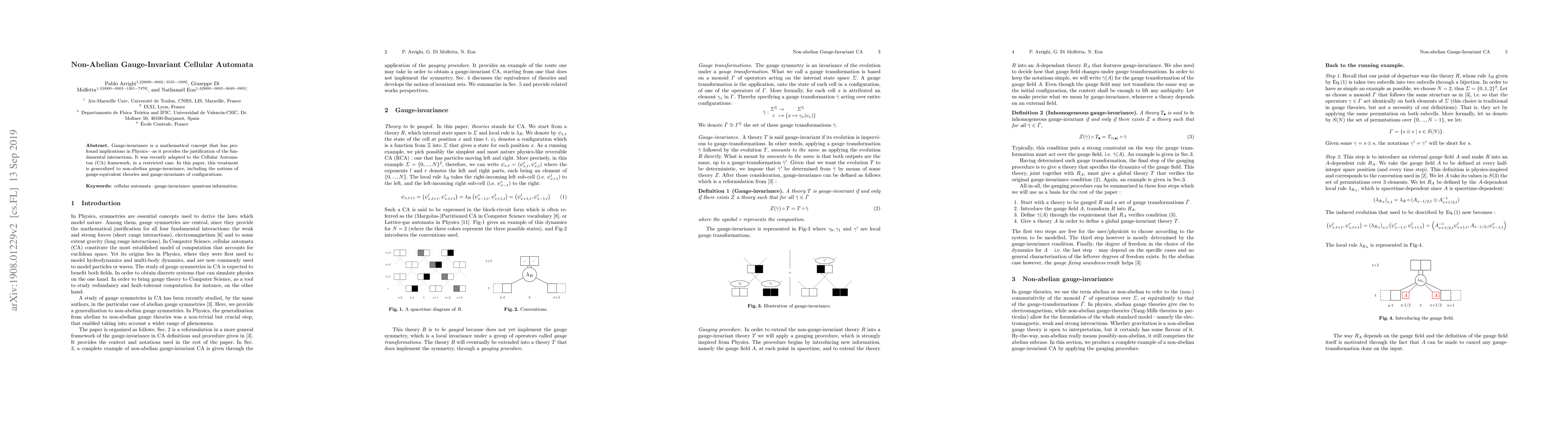 This paper extends gauge-invariance to non-Abelian Cellular Automata, enabling the study of theories with fundamental interactions, and introduces concepts like gauge-equivalent theories and gauge-invariants of configurations.