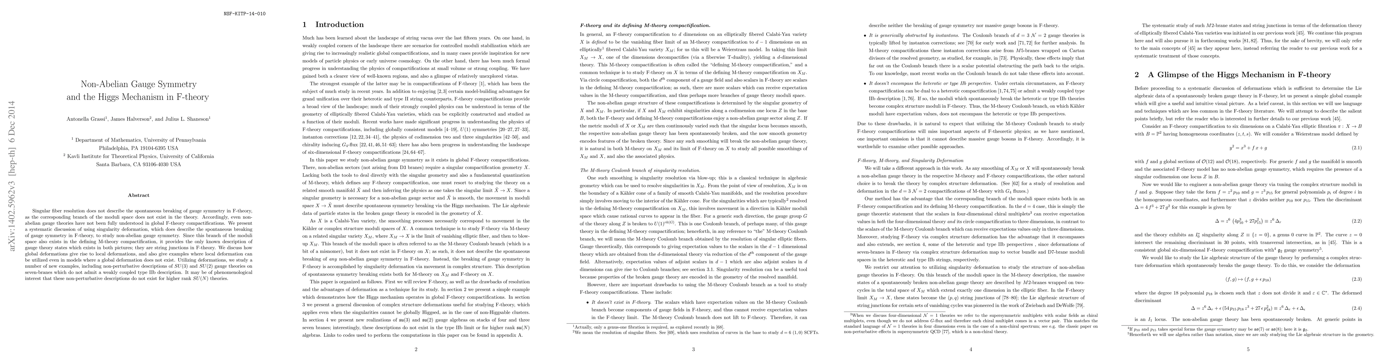Singular fiber resolution does not describe the spontaneous breaking of gauge symmetry in F-theory, as the corresponding branch of the moduli space does not exist in the theory. Accordingly, even non-abelian gauge theories have not been fully understood in global F-theory compactifications. We present a systematic discussion of using singularity deformation, which does describe the spontaneous breaking of gauge symmetry in F-theory, to study non-abelian gauge symmetry. Since this branch of the moduli space also exists in the defining M-theory compactification, it provides the only known description of gauge theory states which exists in both pictures; they are string junctions in F-theory. We discuss how global deformations give rise to local deformations, and also give examples where local deformation can be utilized even in models where a global deformation does not exist. Utilizing deformations, we study a number of new examples, including non-perturbative descriptions of $SU(3)$ and $SU(2)$ gauge theories on seven-branes which do not admit a weakly coupled type IIb description. It may be of phenomenological interest that these non-perturbative descriptions do not exist for higher rank $SU(N)$ theories.