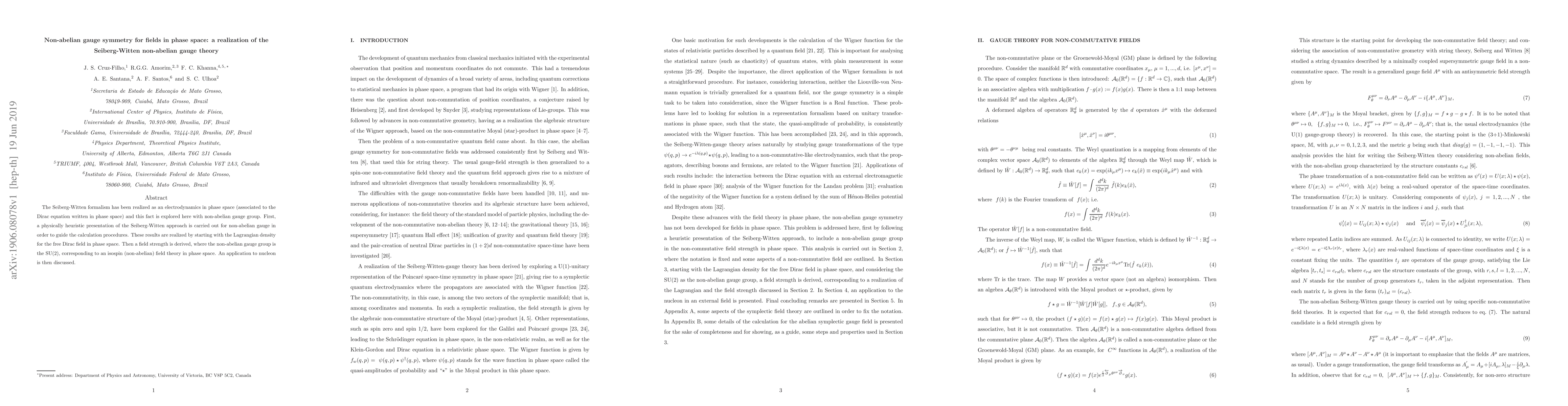 The Seiberg-Witten formalism has been realized as an electrodynamics in phase space (associated to the Dirac equation written in phase space) and this fact is explored here with non-abelian gauge group. First, a physically heuristic presentation of the Seiberg-Witten approach is carried out for non-abelian gauge in order to guide the calculation procedures. These results are realized by starting with the Lagrangian density for the free Dirac field in phase space. Then a field strength is derived, where the non-abelian gauge group is the SU(2), corresponding to an isospin (non-abelian) field theory in phase space. An application to nucleon is then discussed.