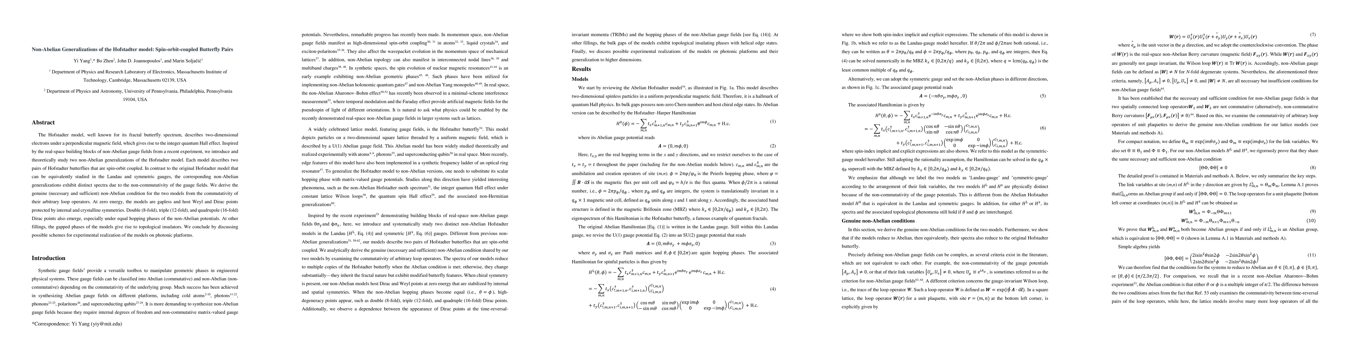 This paper introduces non-Abelian generalizations of the Hofstadter model, featuring spin-orbit coupled butterfly pairs, and explores their distinct spectra due to non-commuting gauge fields. The models exhibit Weyl and Dirac points, along with higher-order Dirac points, and $\mathbb{Z}_2$ topological insulators, with potential experimental realizations in photonic systems.