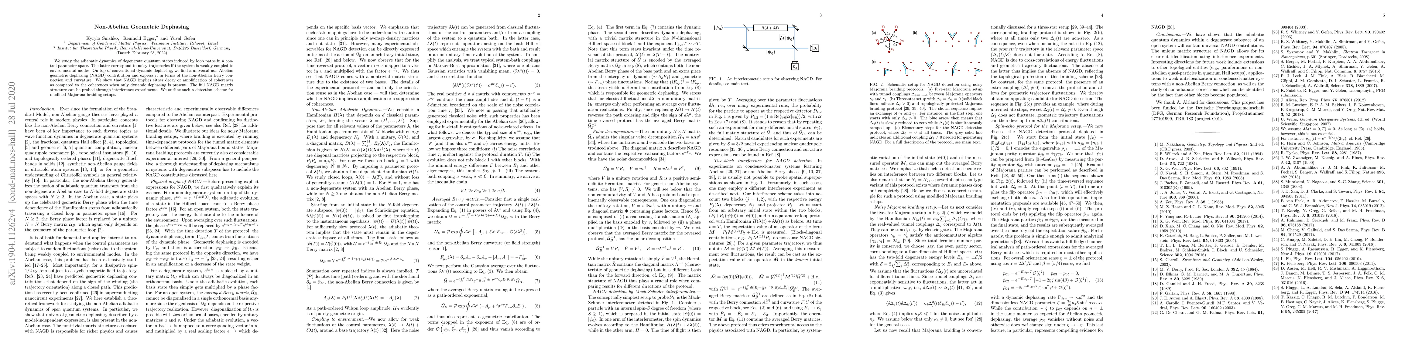 This paper investigates the adiabatic dynamics of degenerate quantum states influenced by loop paths in control parameter space, revealing a universal non-Abelian geometric dephasing (NAGD) contribution. NAGD, expressed via the non-Abelian Berry connection and curvature, can either decay or amplify coherences beyond conventional dynamic dephasing, and its matrix structure can be probed via interference experiments, particularly in modified Majorana braiding setups.