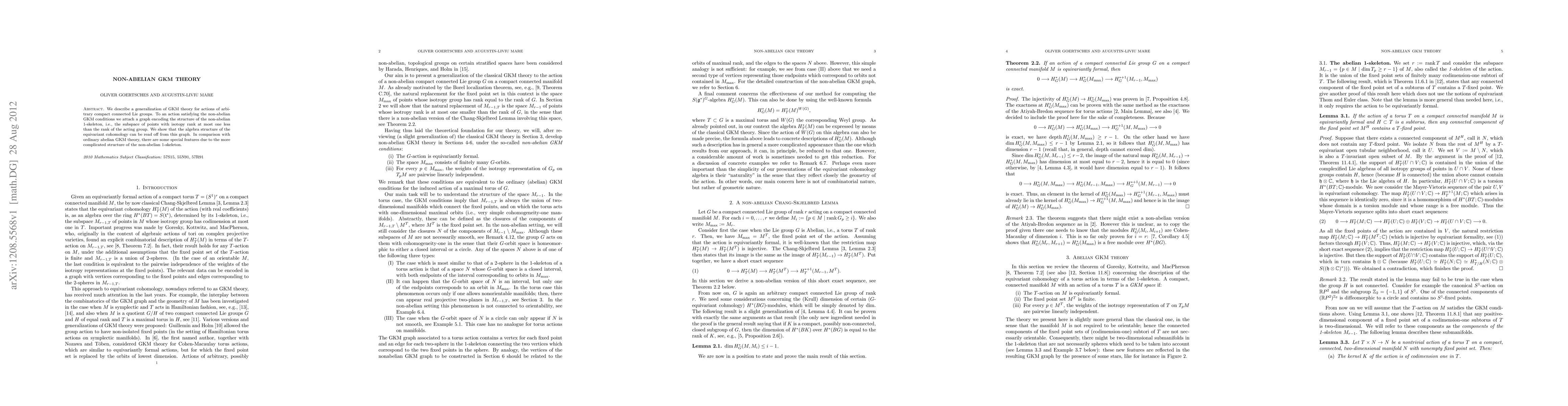 This paper generalizes GKM theory to actions by arbitrary compact connected Lie groups, introducing a graph to represent the non-abelian 1-skeleton. The equivariant cohomology's algebra structure is derived from this graph, highlighting unique features compared to abelian GKM theory.