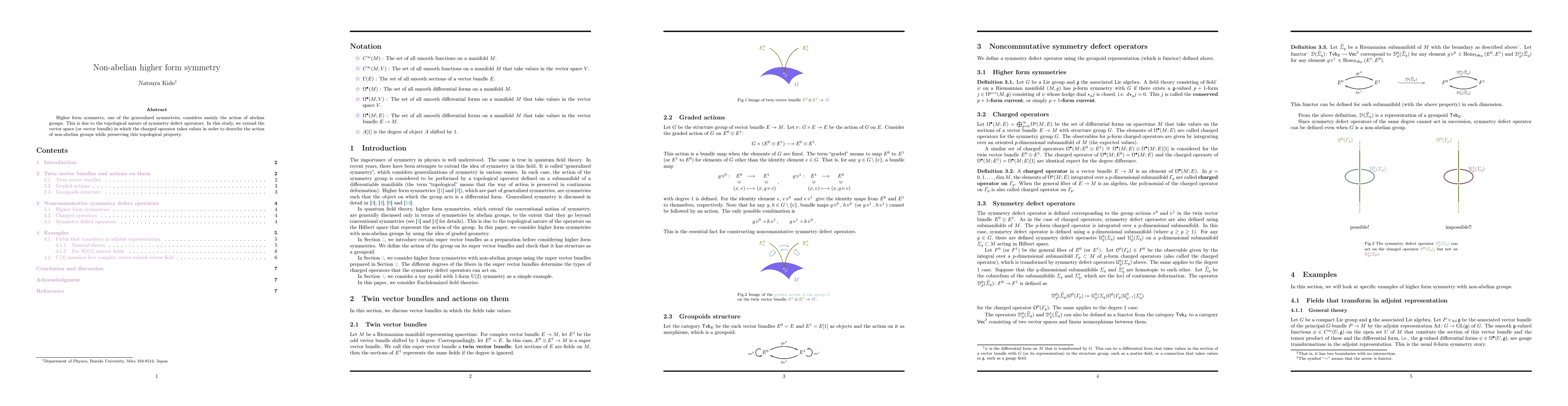 This work differs from existing research by extending higher form symmetry to non-abelian groups, addressing a gap in the literature on generalized symmetries