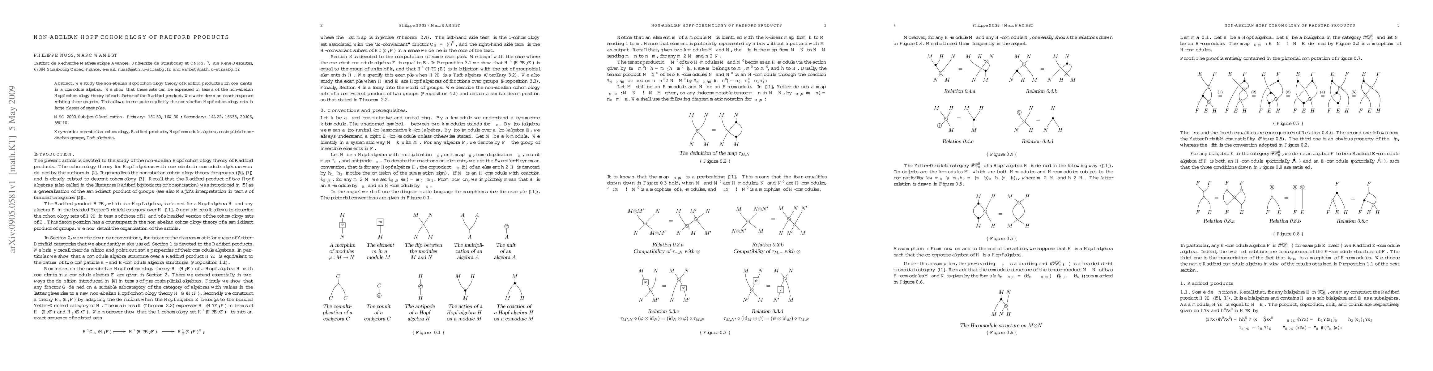 The paper investigates the non-abelian Hopf cohomology theory for Radford products with comodule algebra coefficients, demonstrating that these cohomologies relate to each factor's non-abelian Hopf cohomology and presenting an exact sequence to compute them explicitly in various examples.