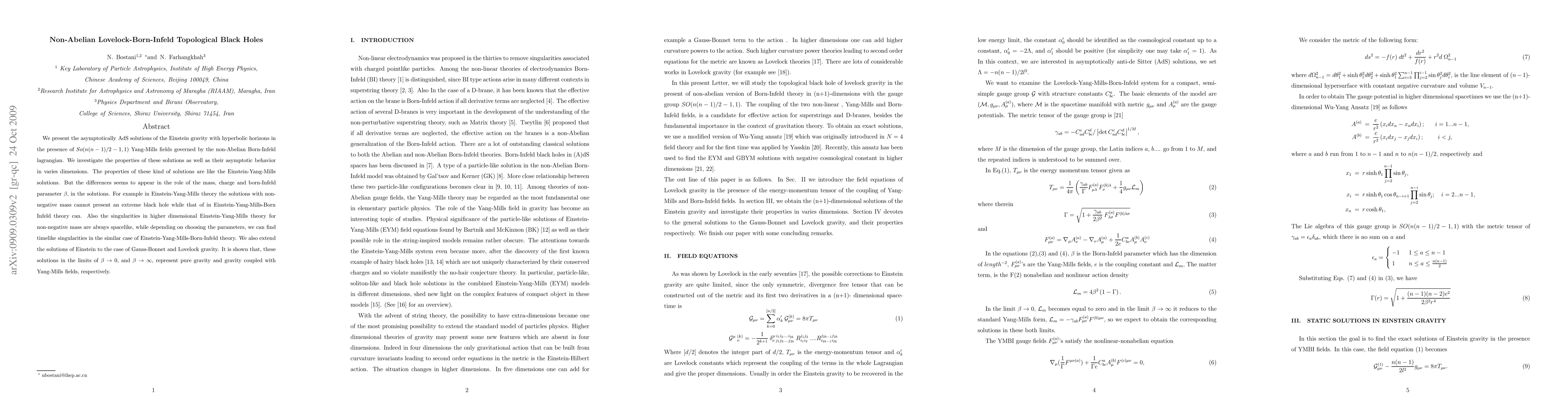 This paper investigates asymptotically AdS solutions in Einstein gravity with hyperbolic horizons, incorporating non-Abelian Born-Infeld fields. It highlights unique properties such as the possibility of extreme black holes and varying singularity types depending on parameters, unlike traditional Einstein-Yang-Mills solutions.